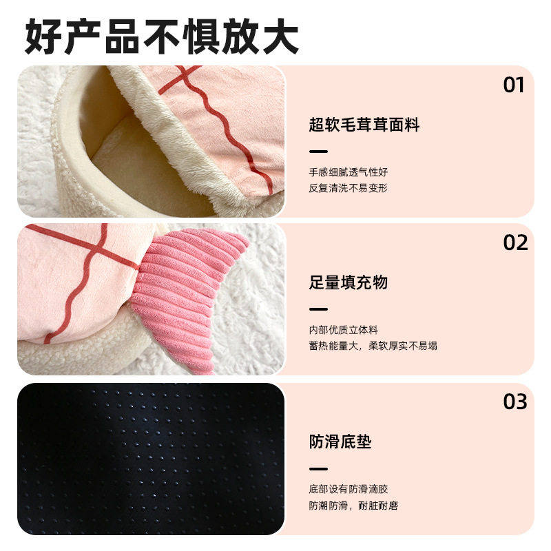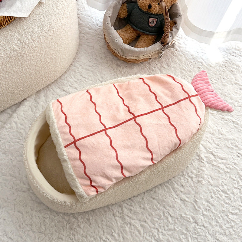 新款宠物窝保暖寿司造型狗床垫秋冬季新品猫窝虾仁造型狗窝