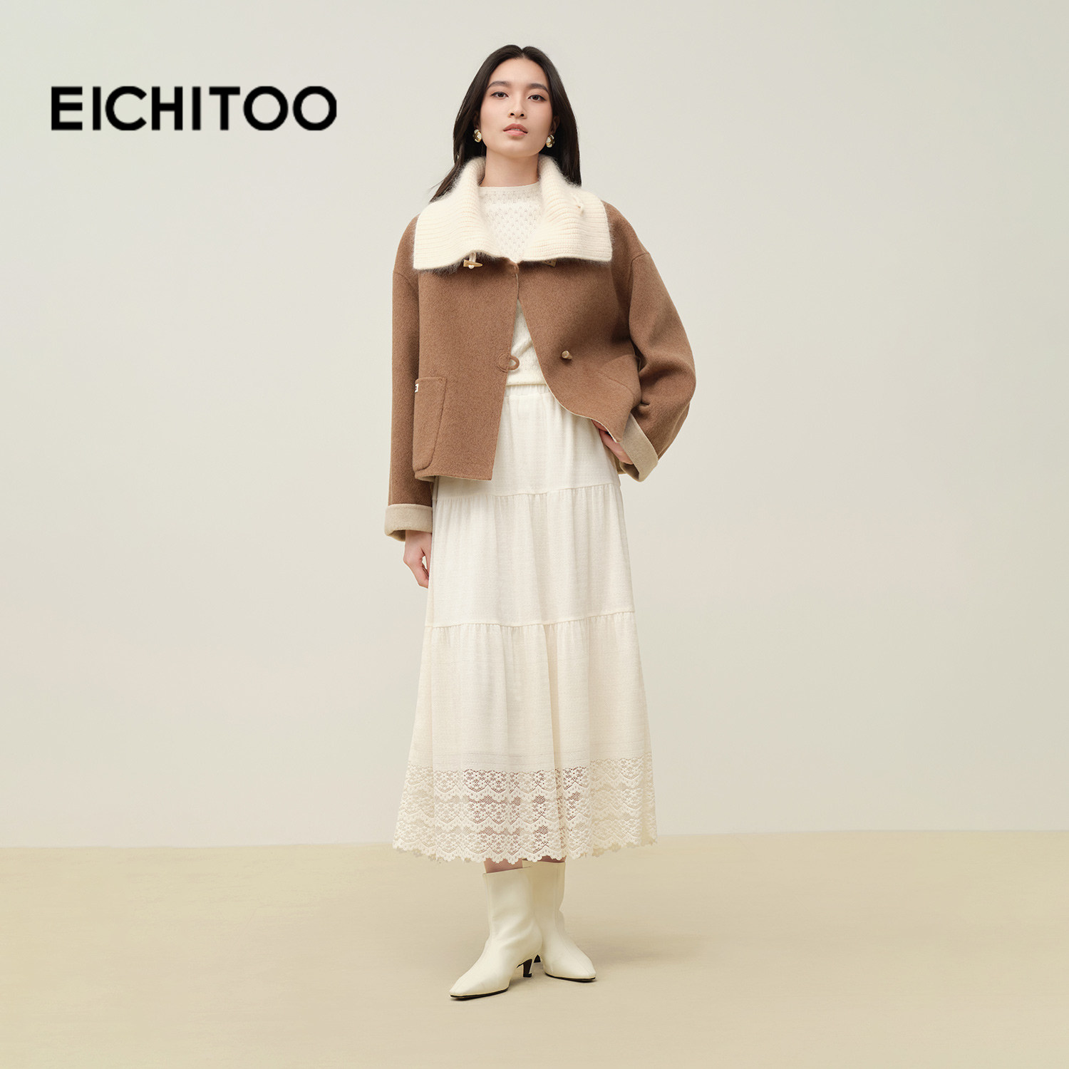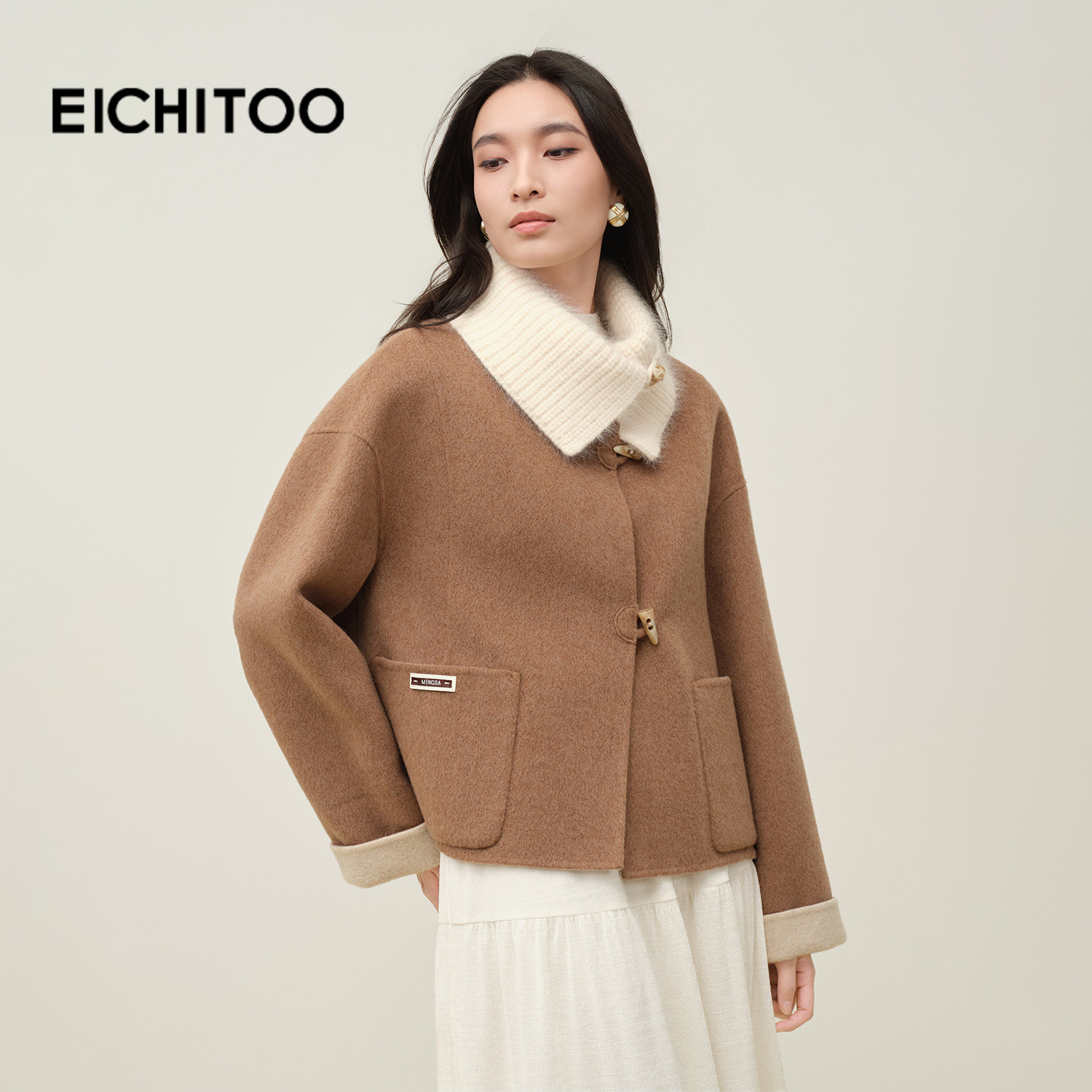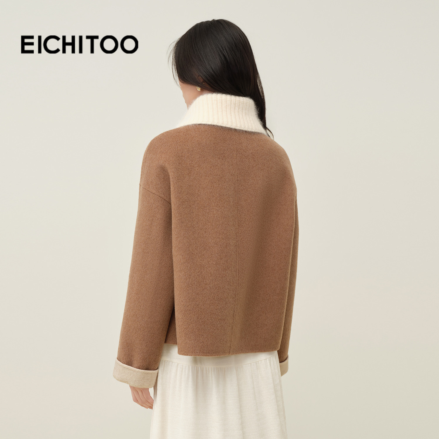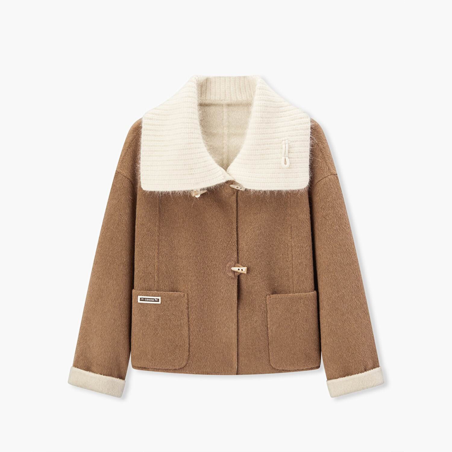 爱居兔温暖柔软双面呢大衣2025年冬季新款女撞色短外套