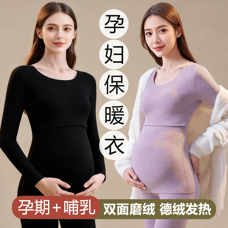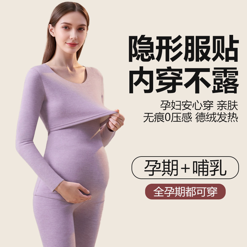 婧麒孕妇秋衣秋裤套装保暖内衣孕期打底产后哺乳喂奶大码月子服冬