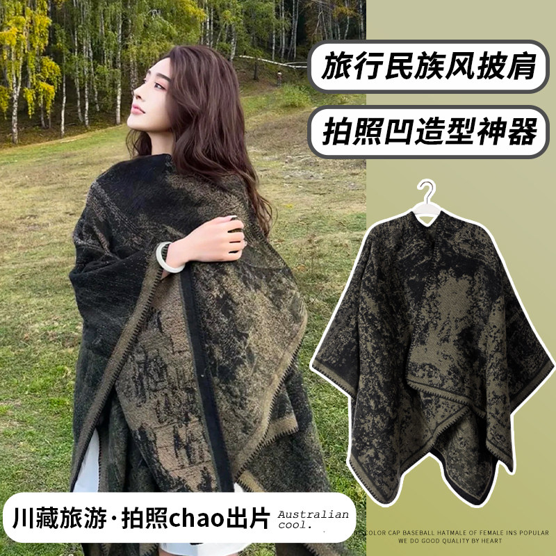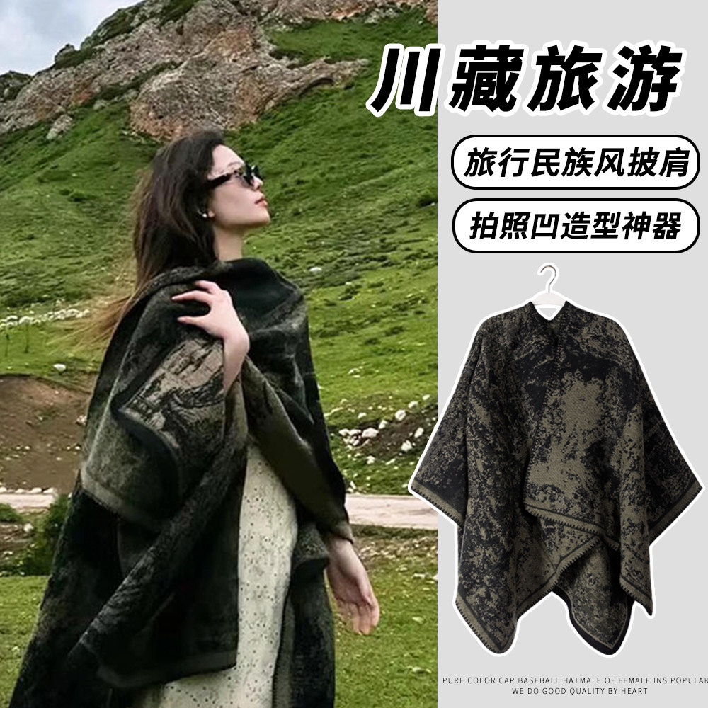 云南西藏大西北外搭披肩内蒙古呼伦贝尔草原旅游穿搭新疆披风旅行