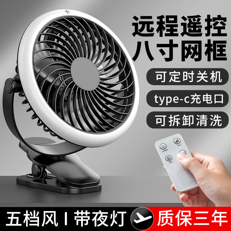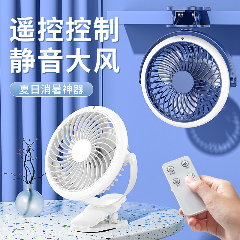 8寸遥控夹子小风扇USB充电家用卧室床头学生宿舍办公室桌面静音小型便携台式电风扇户外露营婴儿车降温神器
