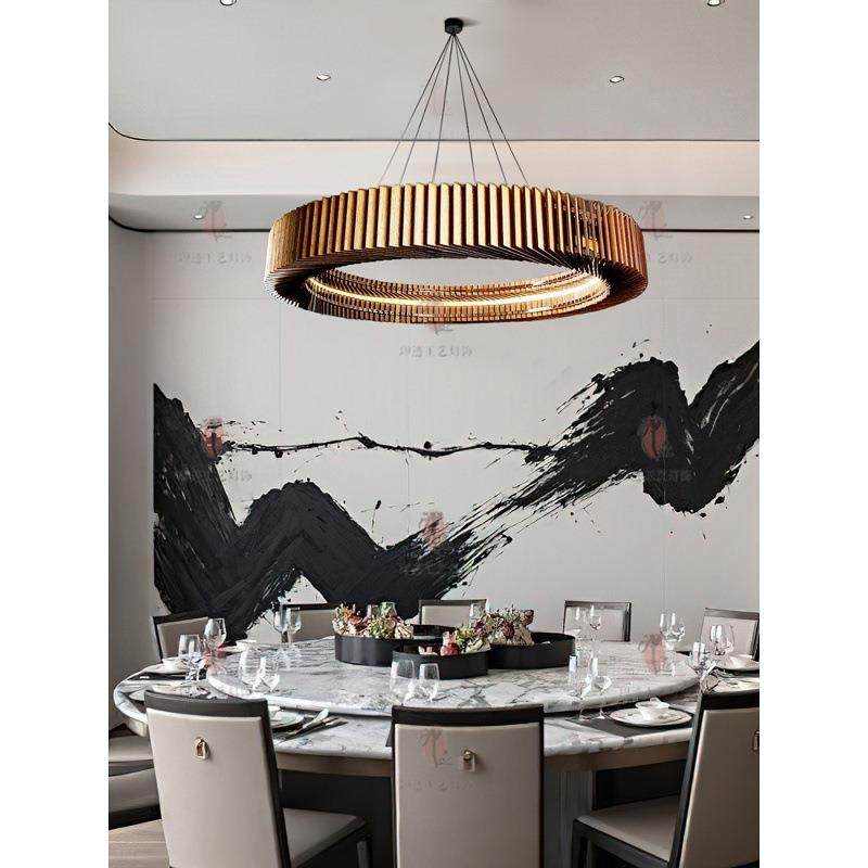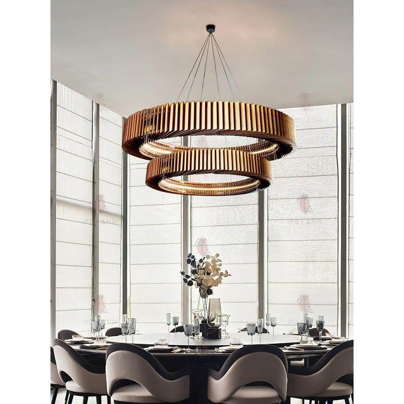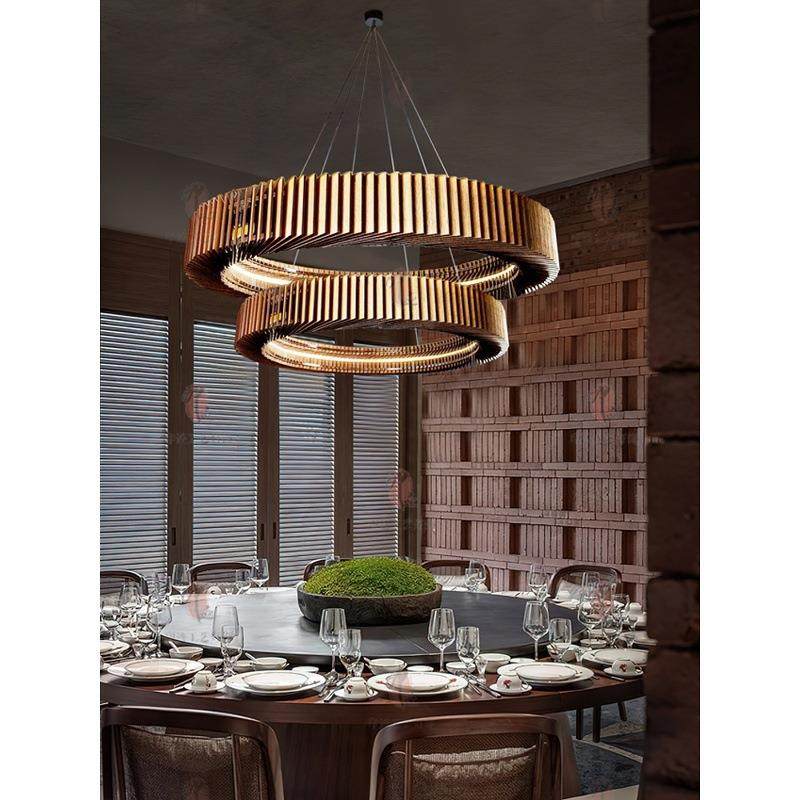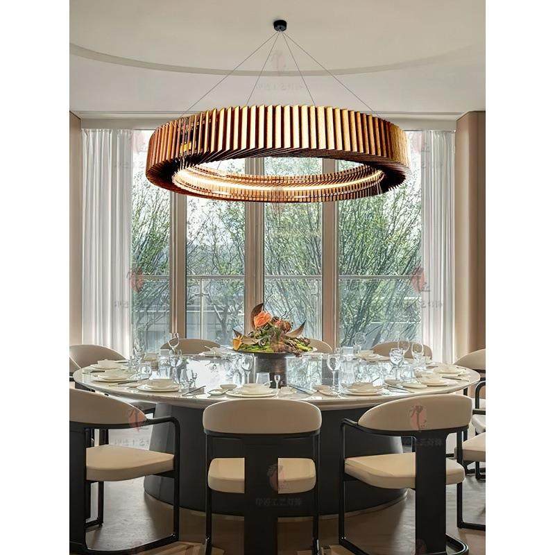 设计师餐厅吊灯2025新款店铺商用饭店包厢圆桌高级感实木餐饮灯具