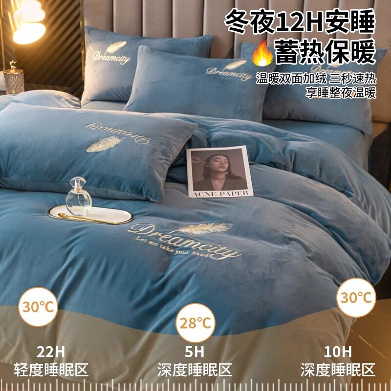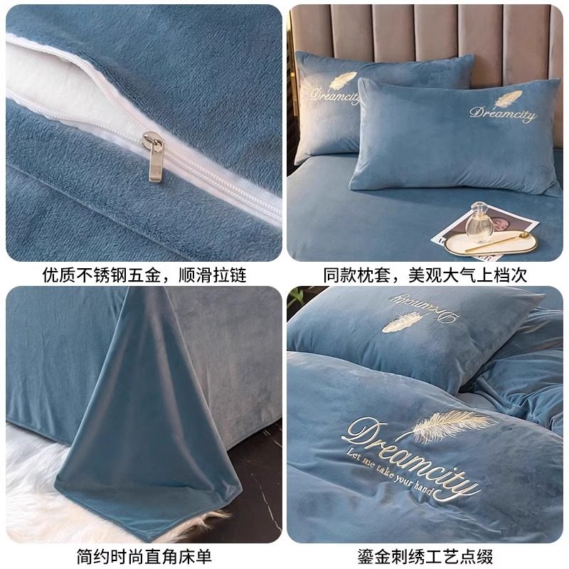 冬季加绒被套单件牛奶绒珊瑚绒宿舍单人单独毛绒被罩1.5米四件套3