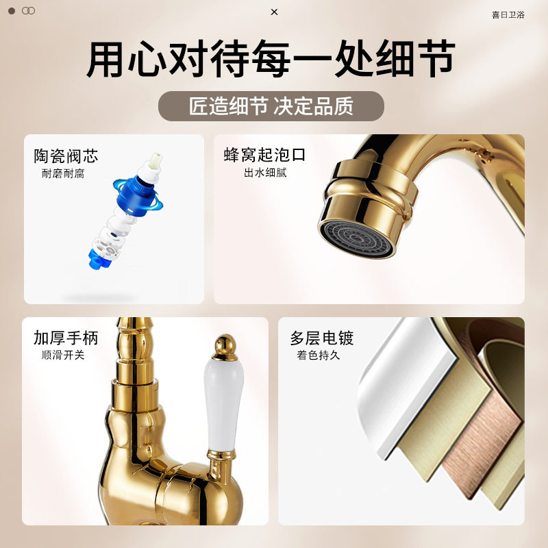 黄铜面盆冷热水龙头洗脸盆台下盆洗手盆混水龙头抽拉全铜浴室经过