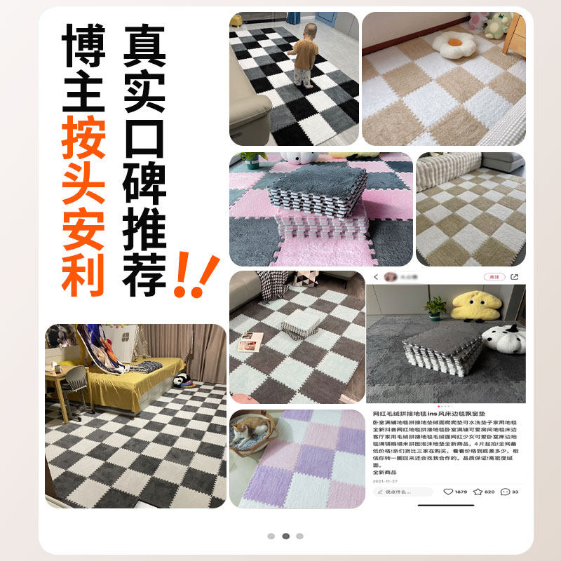 整铺拼接地毯全铺卧室ins风大面积房间毛绒地垫床边毯飘窗网红垫