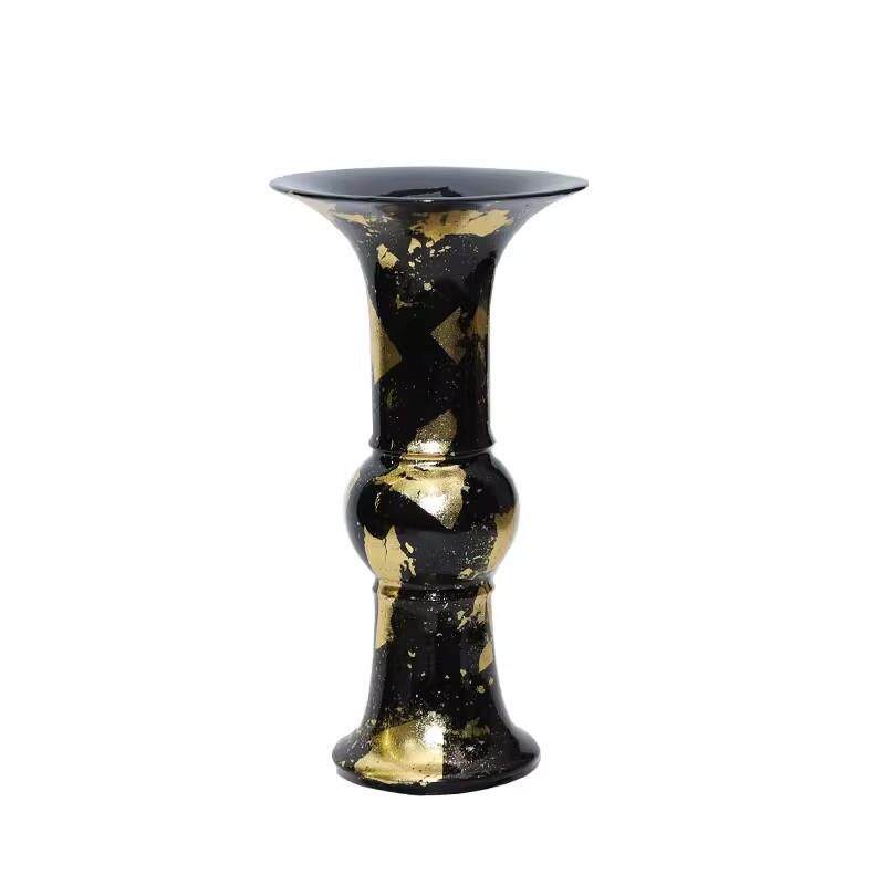 轻奢极简新中式现代金箔黑金花壶树脂花器样板间售楼处软装花瓶