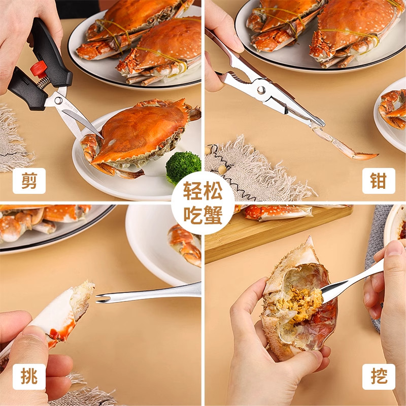 吃蟹工具蟹八件吃螃蟹专用大闸蟹三件套蟹剪刀钳夹针拆蟹剥蟹神器