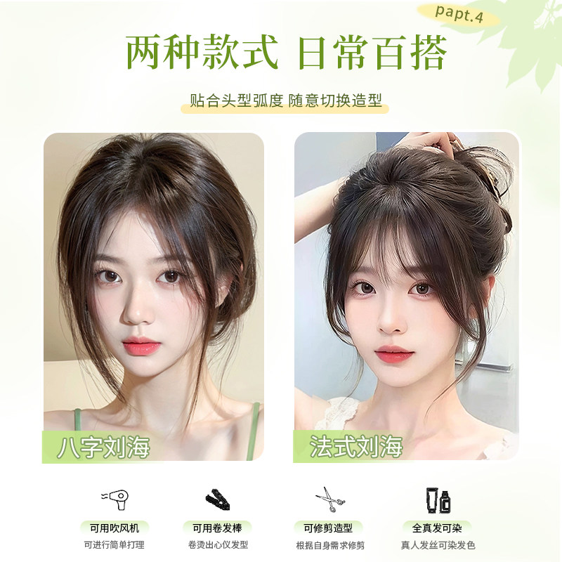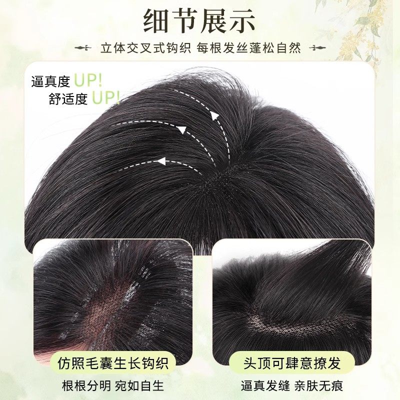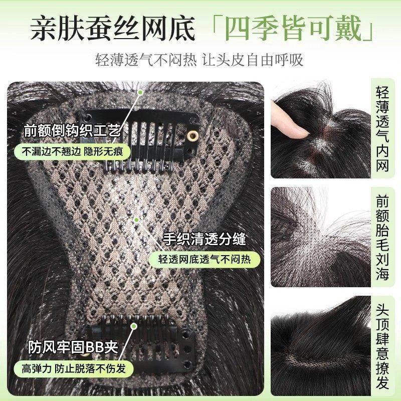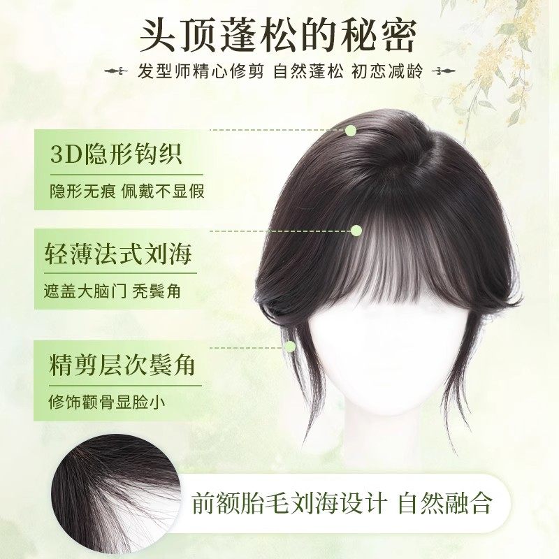 刘海假发女片头顶补发真发全真人发高颅顶增发量遮白发假刘海八字