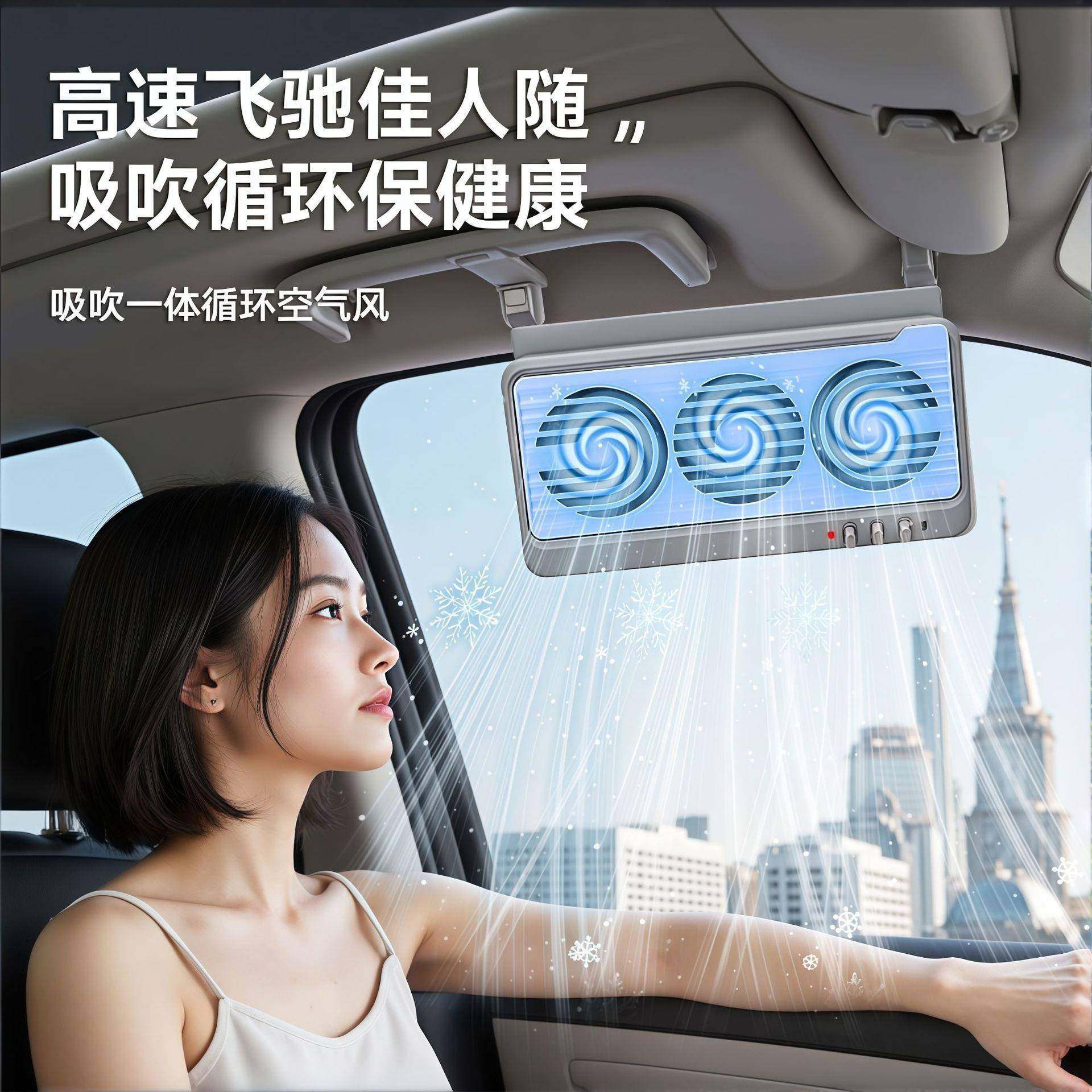 车载太阳能排风扇吸吹一体车载风扇车内降温空气循环扇汽车换气扇
