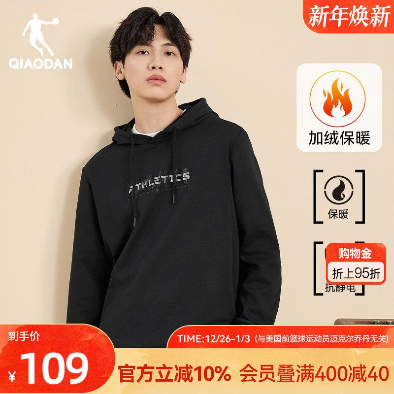 乔丹运动卫衣男2025冬季舒适耐磨加绒宽松简约连帽衫针织上衣长袖