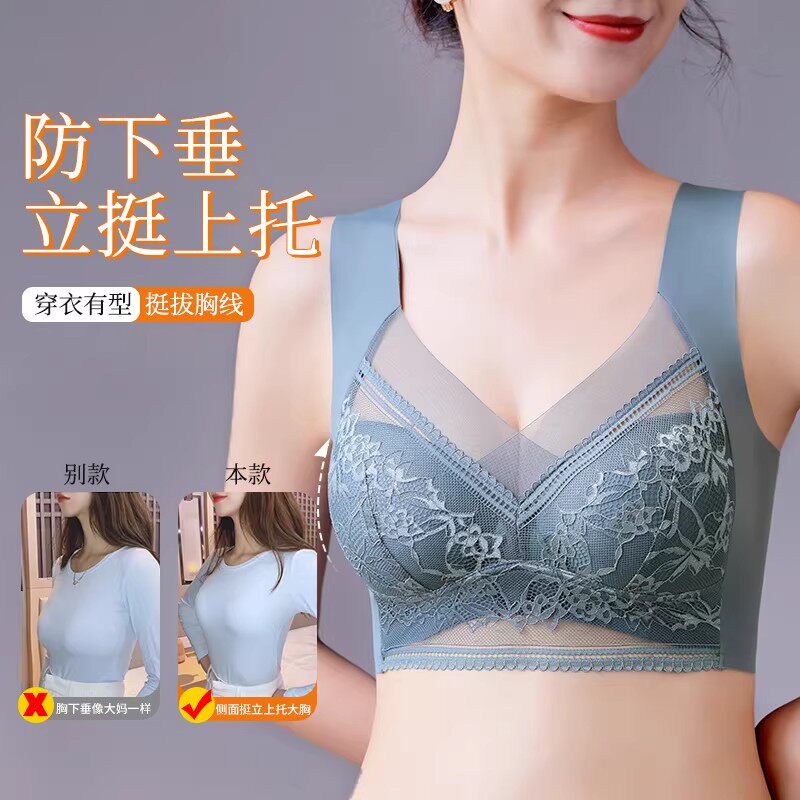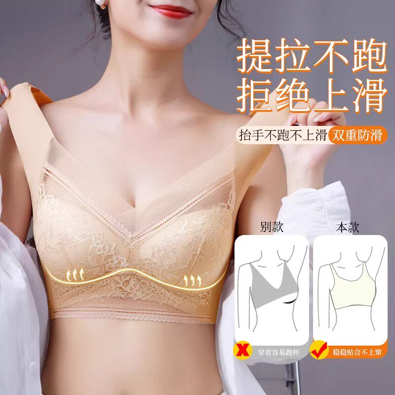润微提拉内衣女大胸显小无痕提拉防下垂聚拢收副乳胸罩爆款文胸
