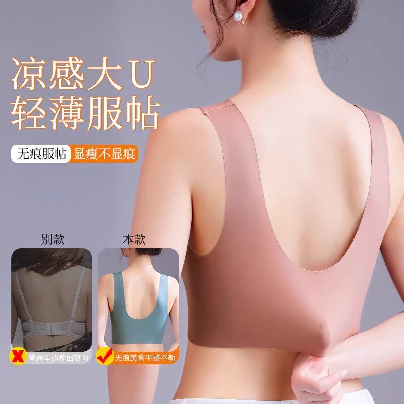 无痕内衣女小胸聚拢夏季薄款运动一体美背心式固定杯无钢圈文胸罩