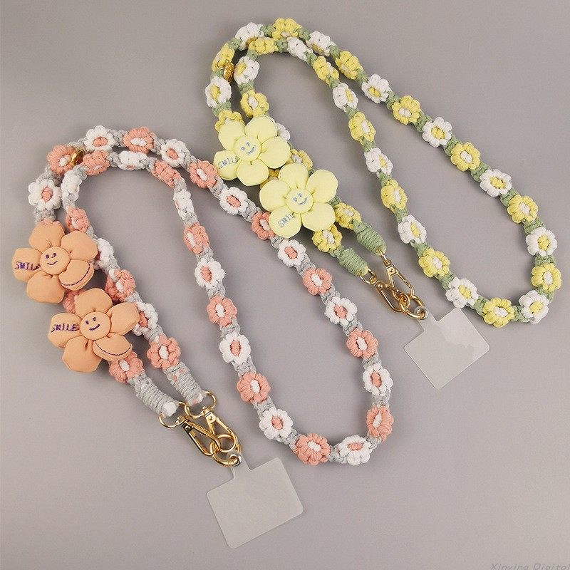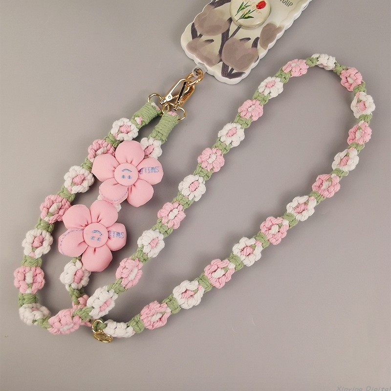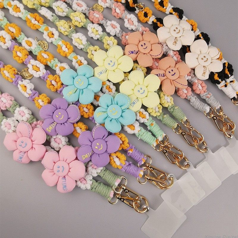 手机挂绳长款斜挎绳可肩背带子手工编织小雏菊花朵挂链时尚结实潮
