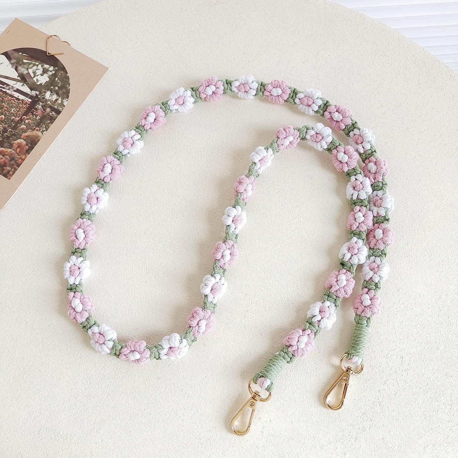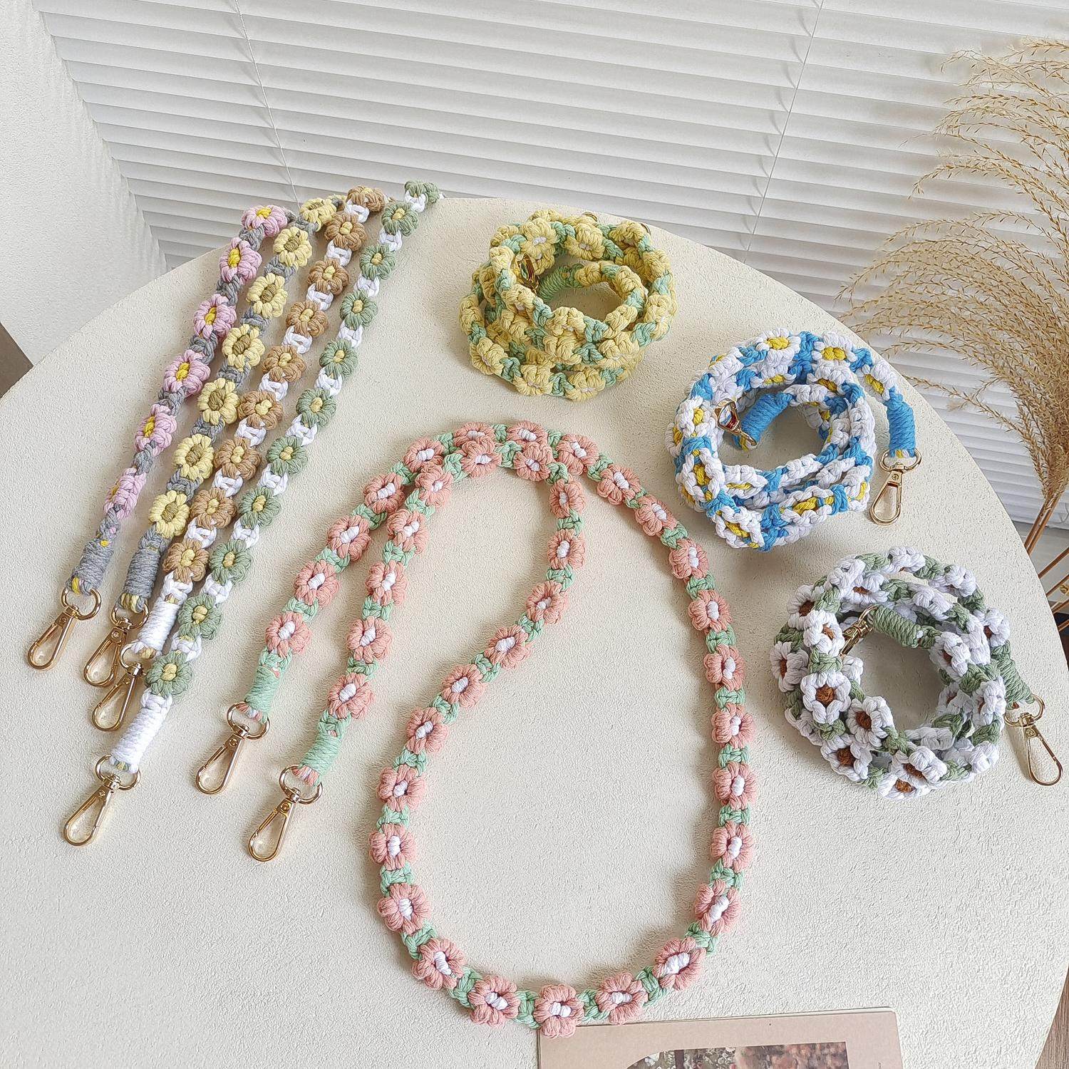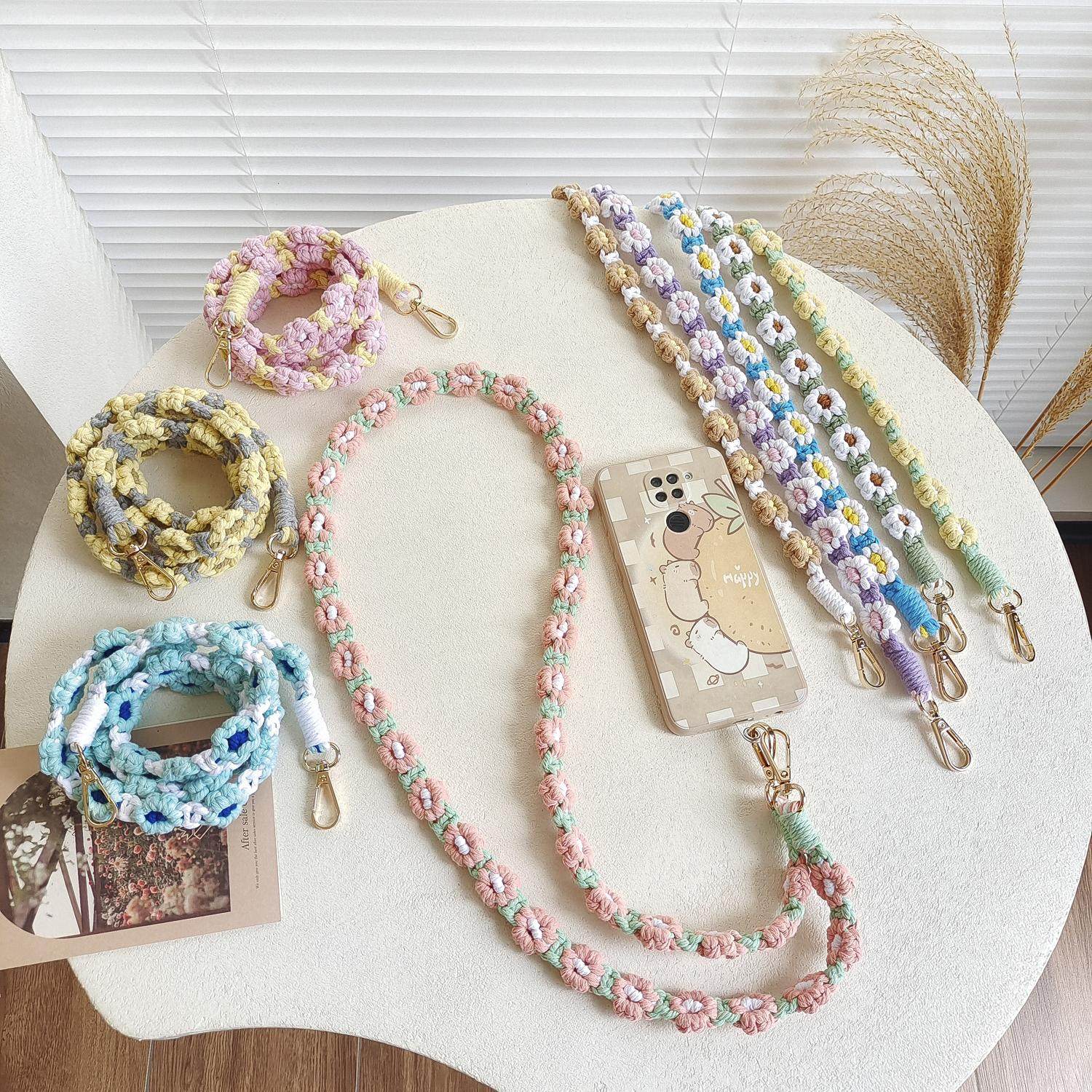 手工编织手机挂绳斜挎可背小雏菊花背绳防丢电话高端带子包包替换