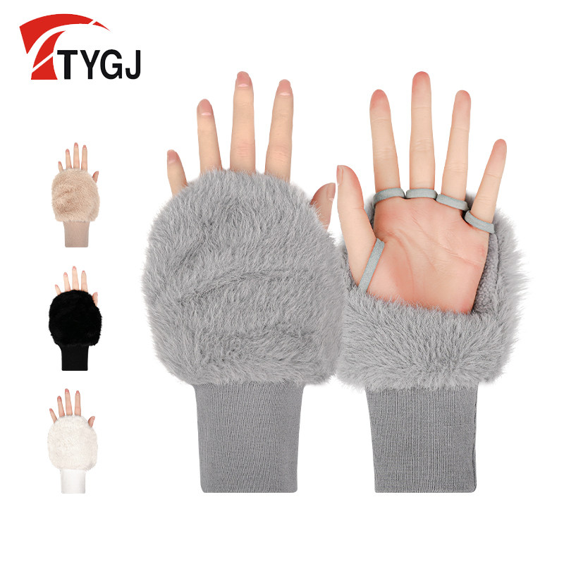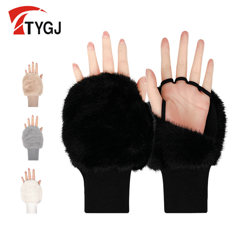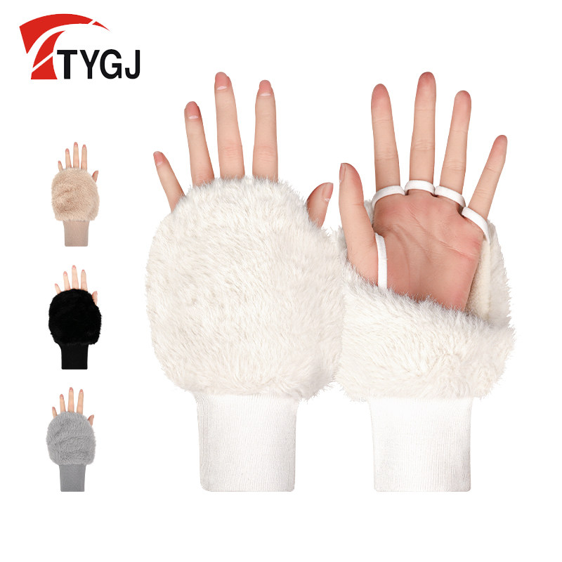 高尔夫球手套保暖加绒韩版女士露指手套手背加厚毛绒户外手套双手