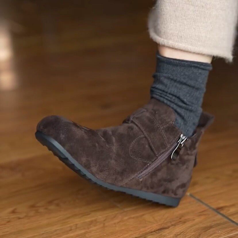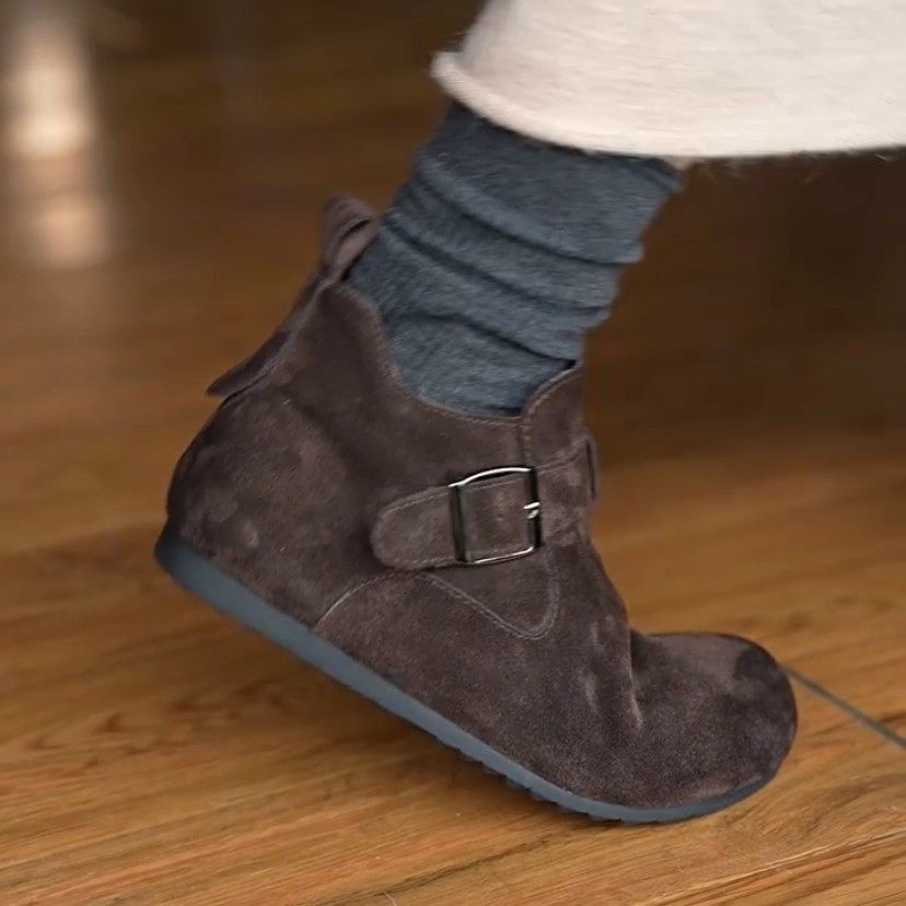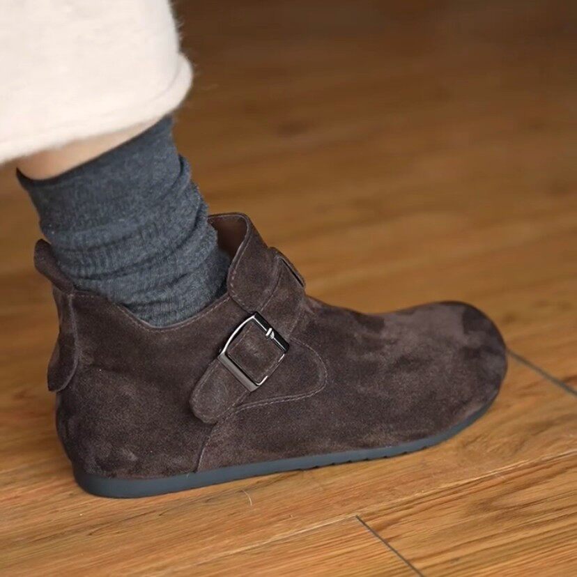 羊皮版~复古加绒保暖马丁靴女2025新款平底皮带扣侧拉链勃肯短靴