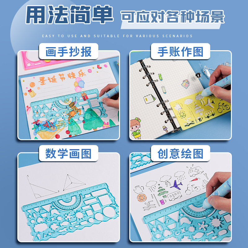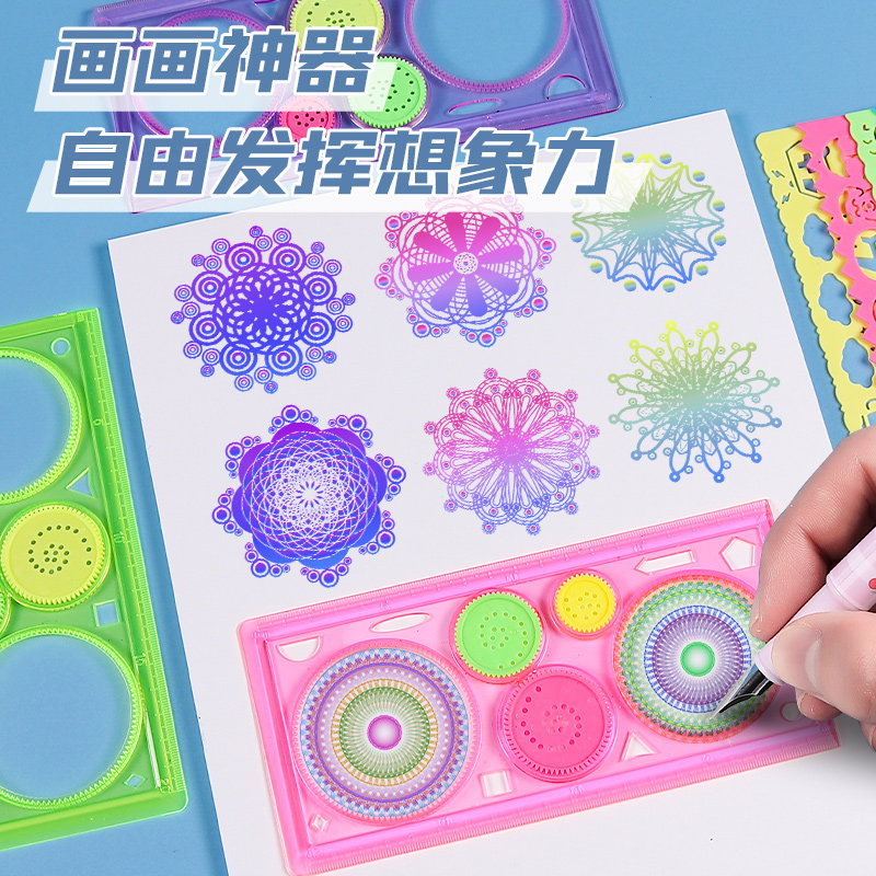 尺子小学生专用多功能万花尺手抄报模板万能尺画画神器学生镂空绘画尺百变魔幻套装几何学习画图工具