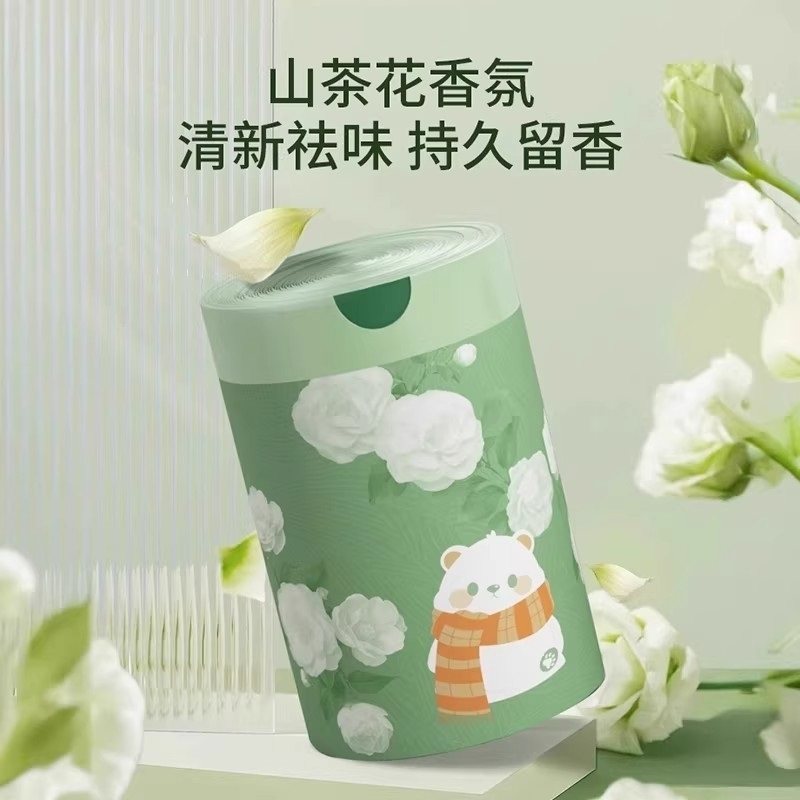 山茶花印花抽绳垃圾袋家用清洁袋塑料抽绳款宿舍日常袋子免撕
