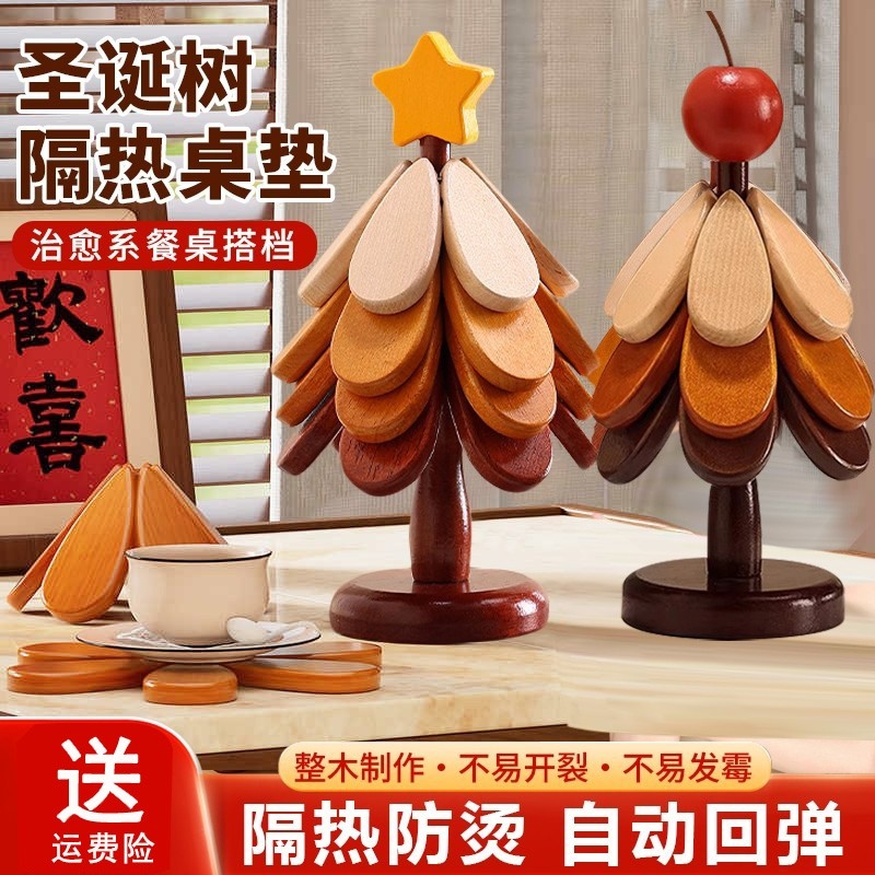 日式圣诞树实木隔热垫餐垫耐高温防烫锅垫折叠垫餐桌摆件创意新款