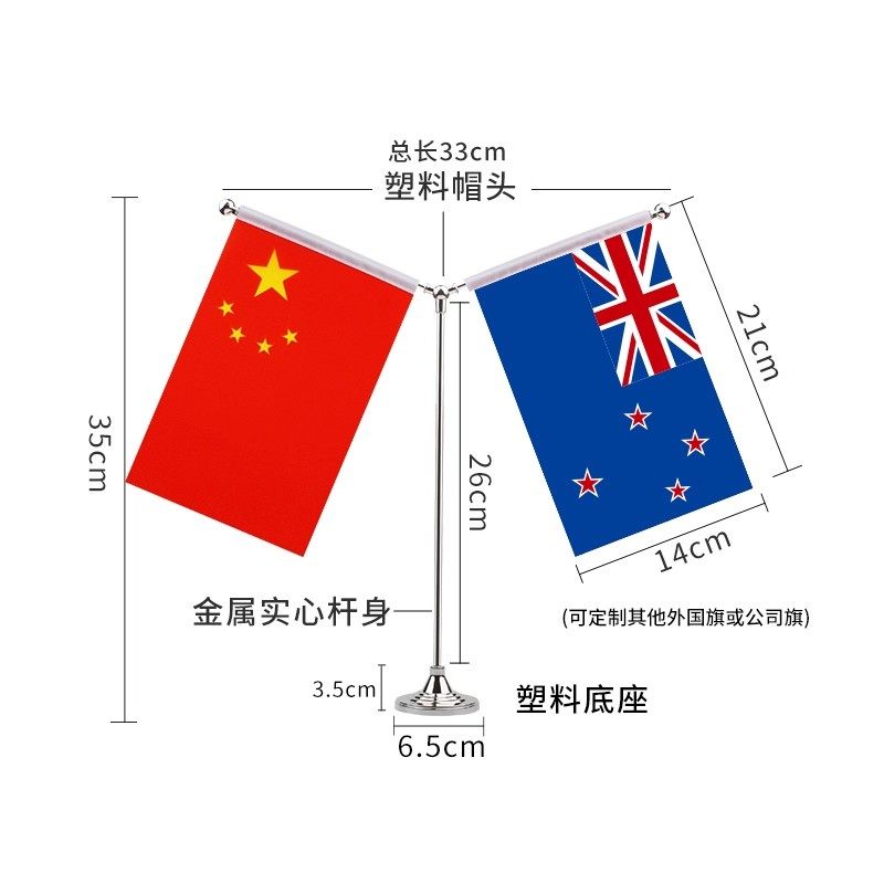 中国新西兰桌旗国旗摆件谈判签字约小红旗台旗装饰办公室桌面Y型
