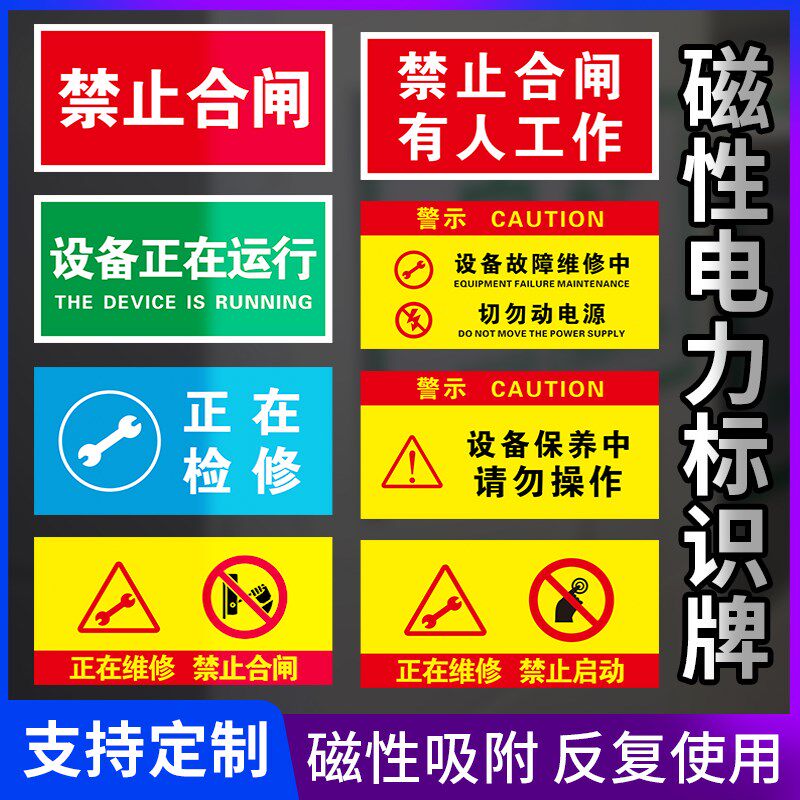 速发牌性电力安全标识牌警示牌磁性标识牌吸铁设备状态磁机械正在