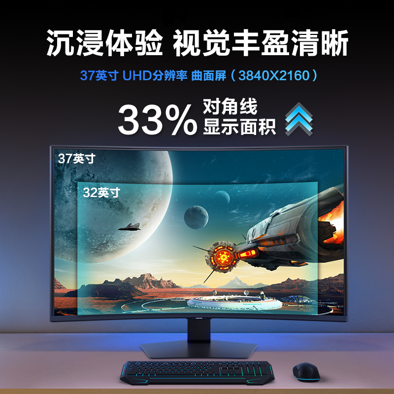 三星显示器37英寸4K165Hz电竞游戏高清电脑VA曲面屏幕S37FG756EC