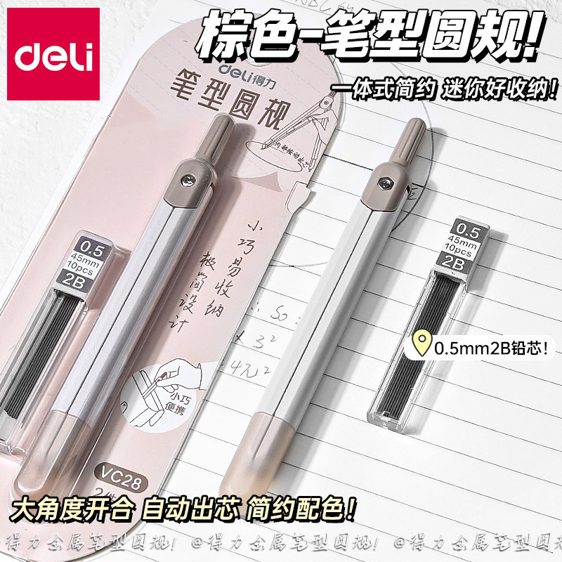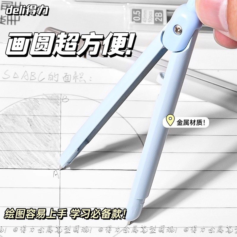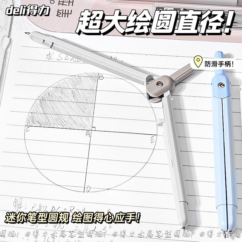 得力笔式圆规小学生用金属圆规按动出芯初高中生考试绘图设计工具