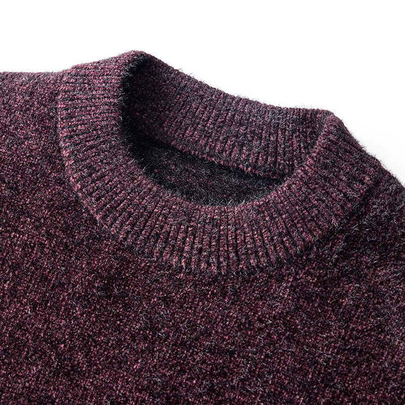 外贸大牌正品绒感雪尼尔保暖针织衫22冬新款圆领套头长袖毛衣男