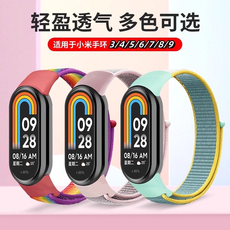 适用小米手环10/9/8/7/6/5/4/3/NFC通用尼龙回环腕带运动透气高级感时尚表带个性小众经典同款非原装智能配件