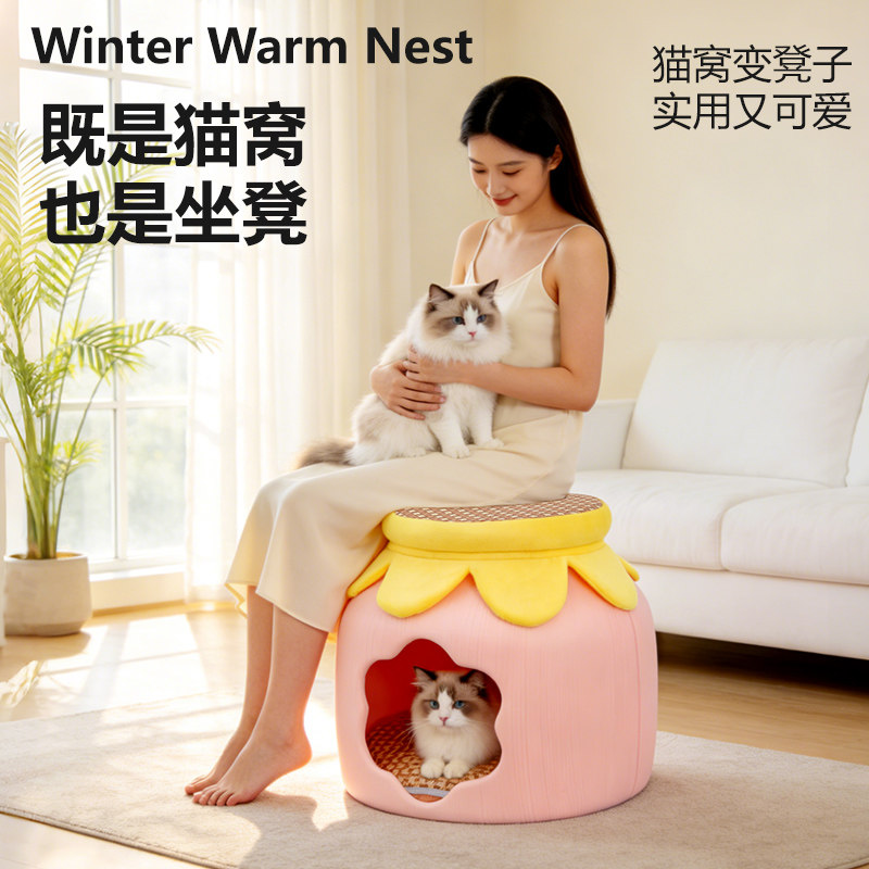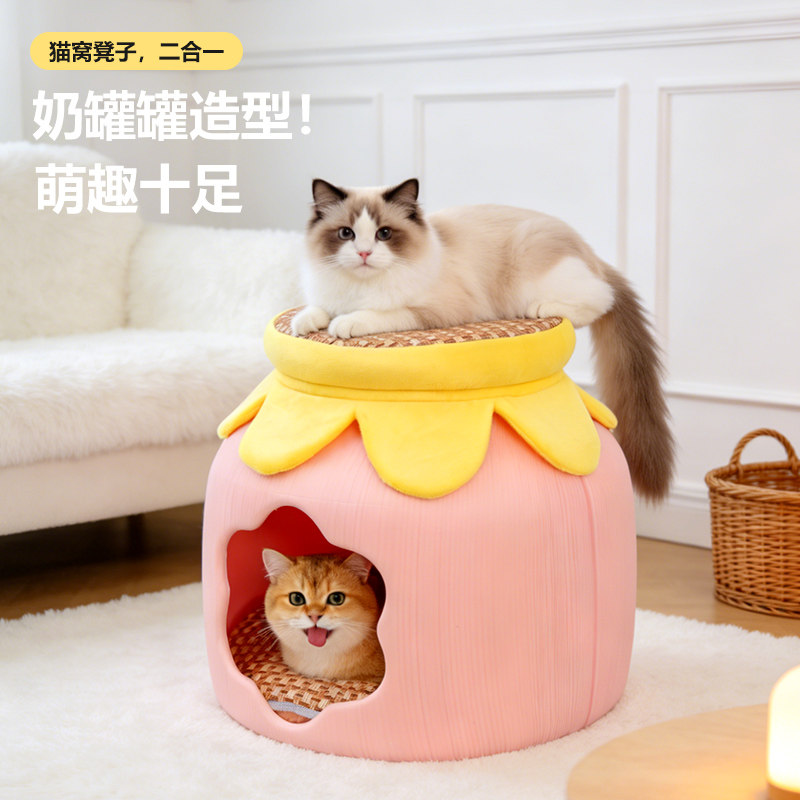 四季款创意奶瓶猫窝可爱猫咪屋人宠两用凳子猫房子半包围安全感窝