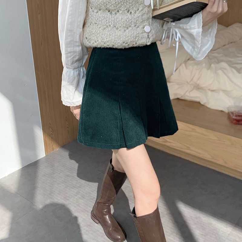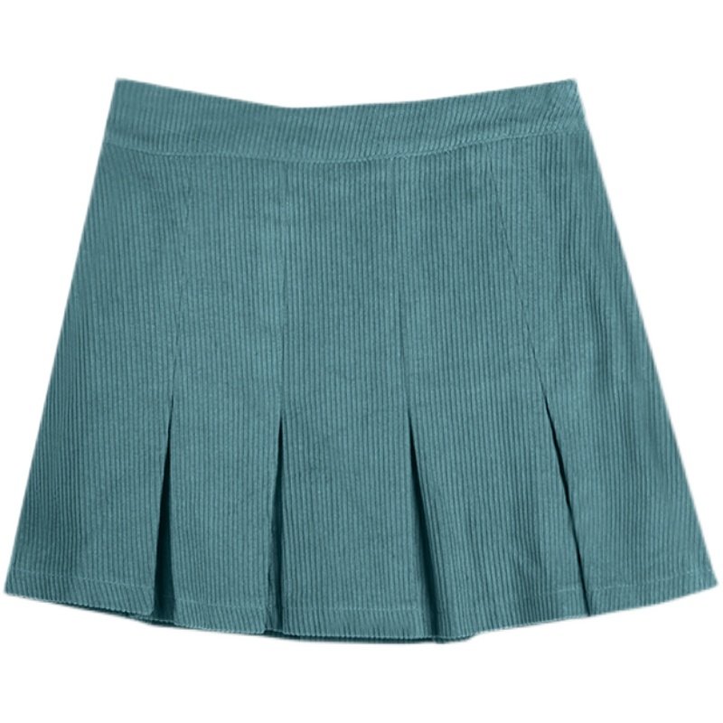 大码灯芯绒百褶裙女半身裙秋冬绿色a字半裙显瘦遮肚子小个子短裙