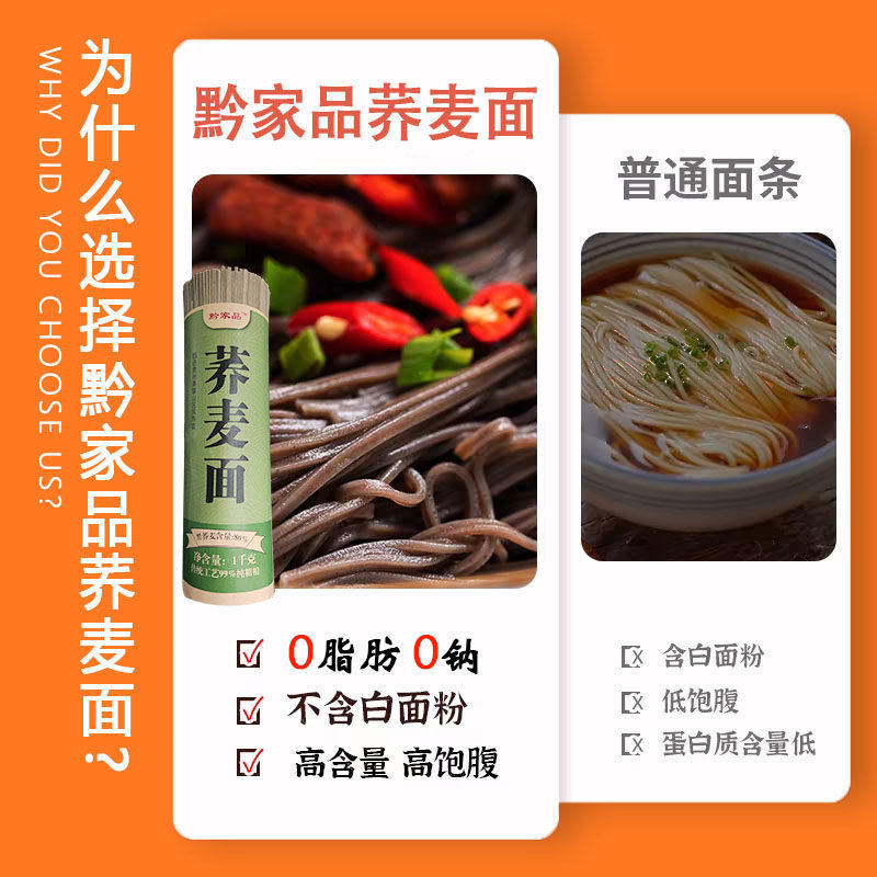 正宗黑荞麦面糖尿人三高主食控糖孕妇挂面全麦纯粗粮乔麦蕎麥面条