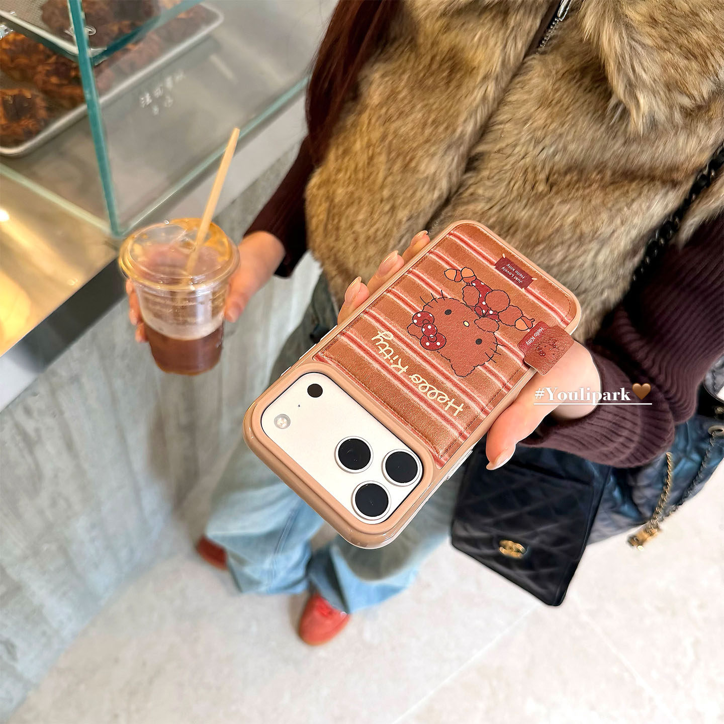 由里公园ins韩系秋冬可爱栗子棕条纹猫咪17适用17pro苹果17ProMax手机壳iPhone16全包14新款16Promax保护套女