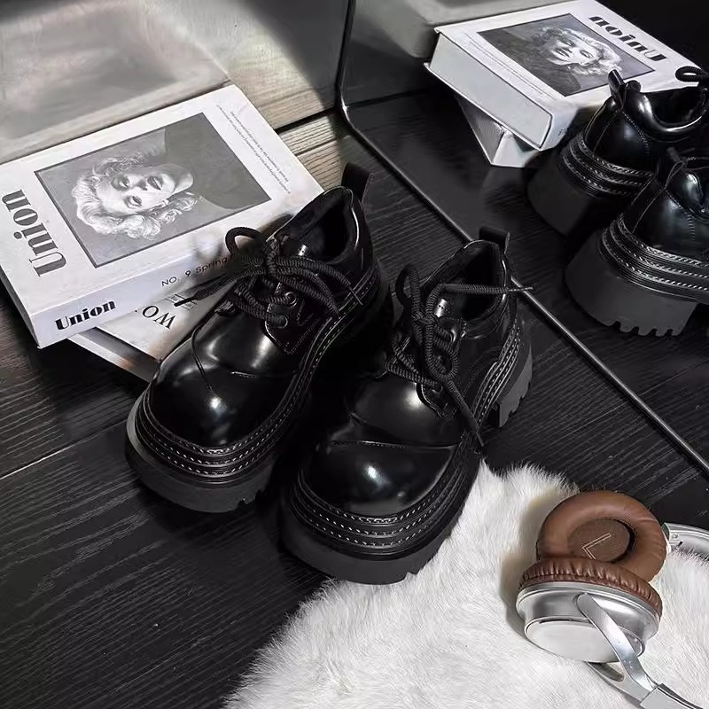 真皮厚底乐福鞋女2025春秋新款百搭学院黑色单鞋系带英伦风小皮鞋