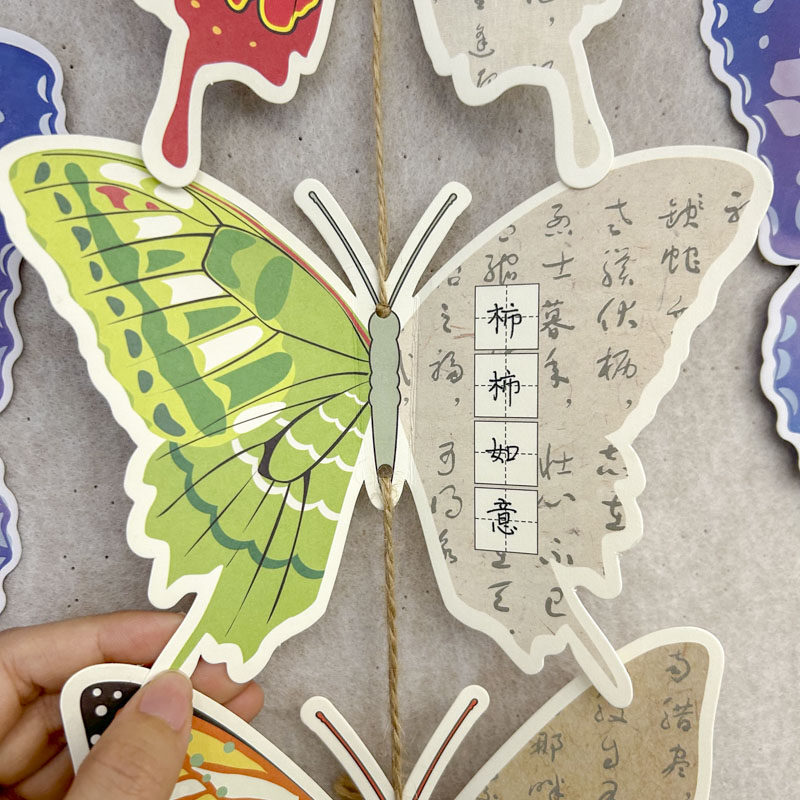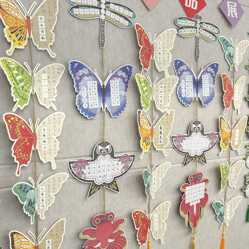 古风立体蝴蝶硬笔书法作品纸中国风创意卡通春天纸鸢风筝小学生古诗练字卡片培训班教室环创装饰布置展示挂件