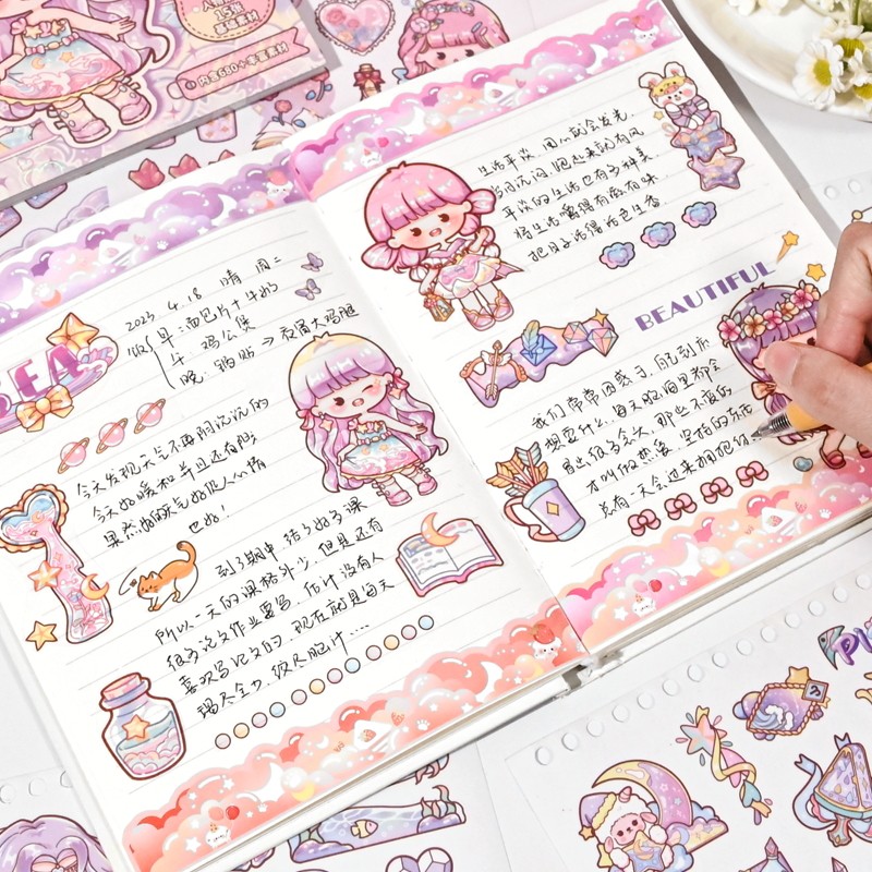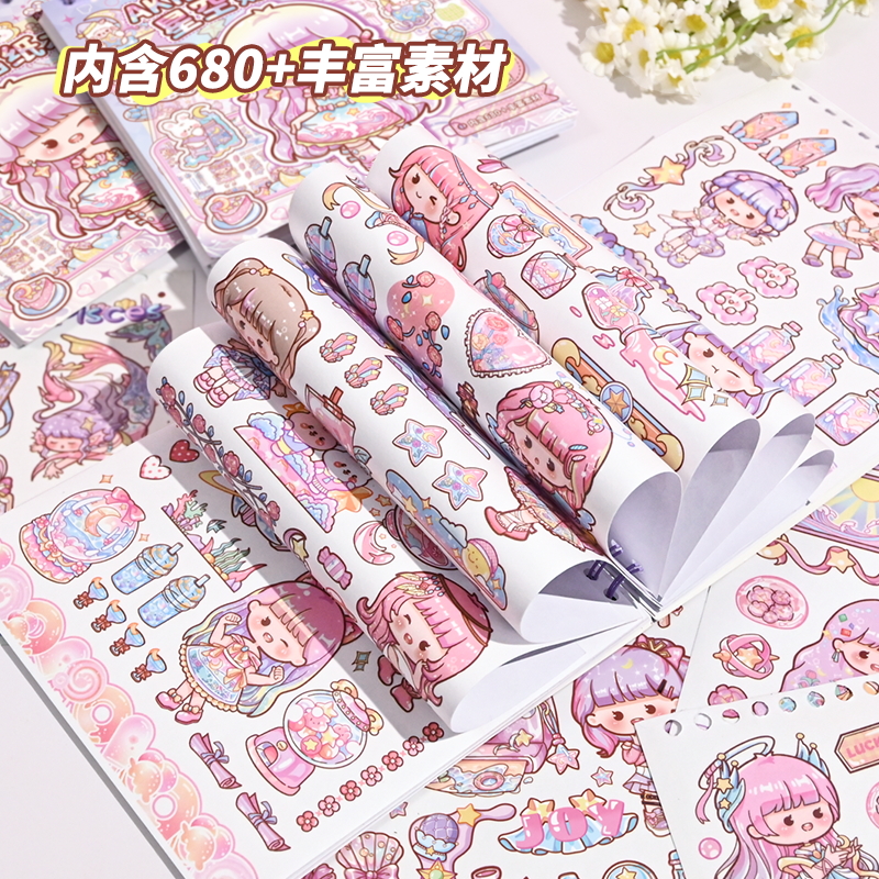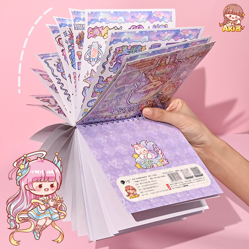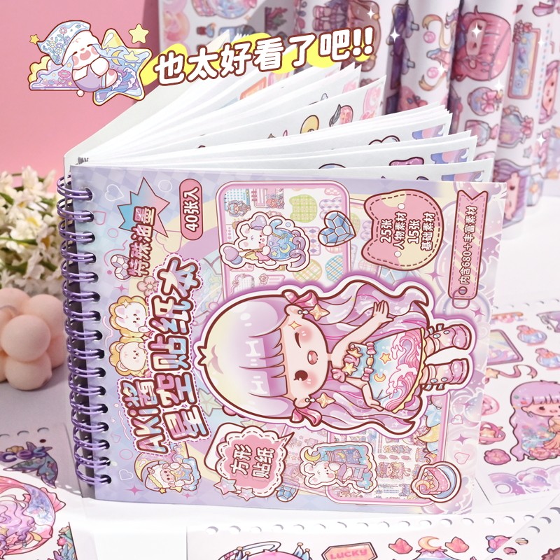 子亦Aki酱线圈贴纸本卡通女孩儿童奖励防水PET小本子换装造景装饰小图案手帐场景贴贴手账行李箱帖纸女生咕卡