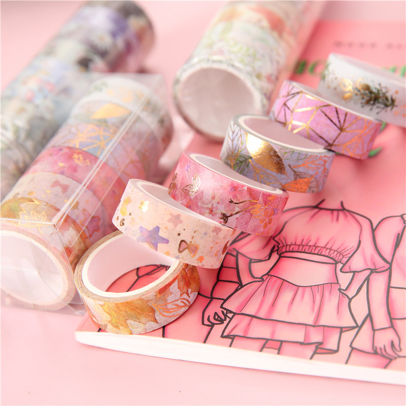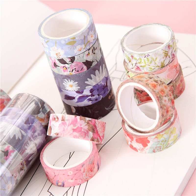 DIY手账胶带鲜花烫金花边胶带边框装饰贴纸ins和纸胶带手账本粘贴