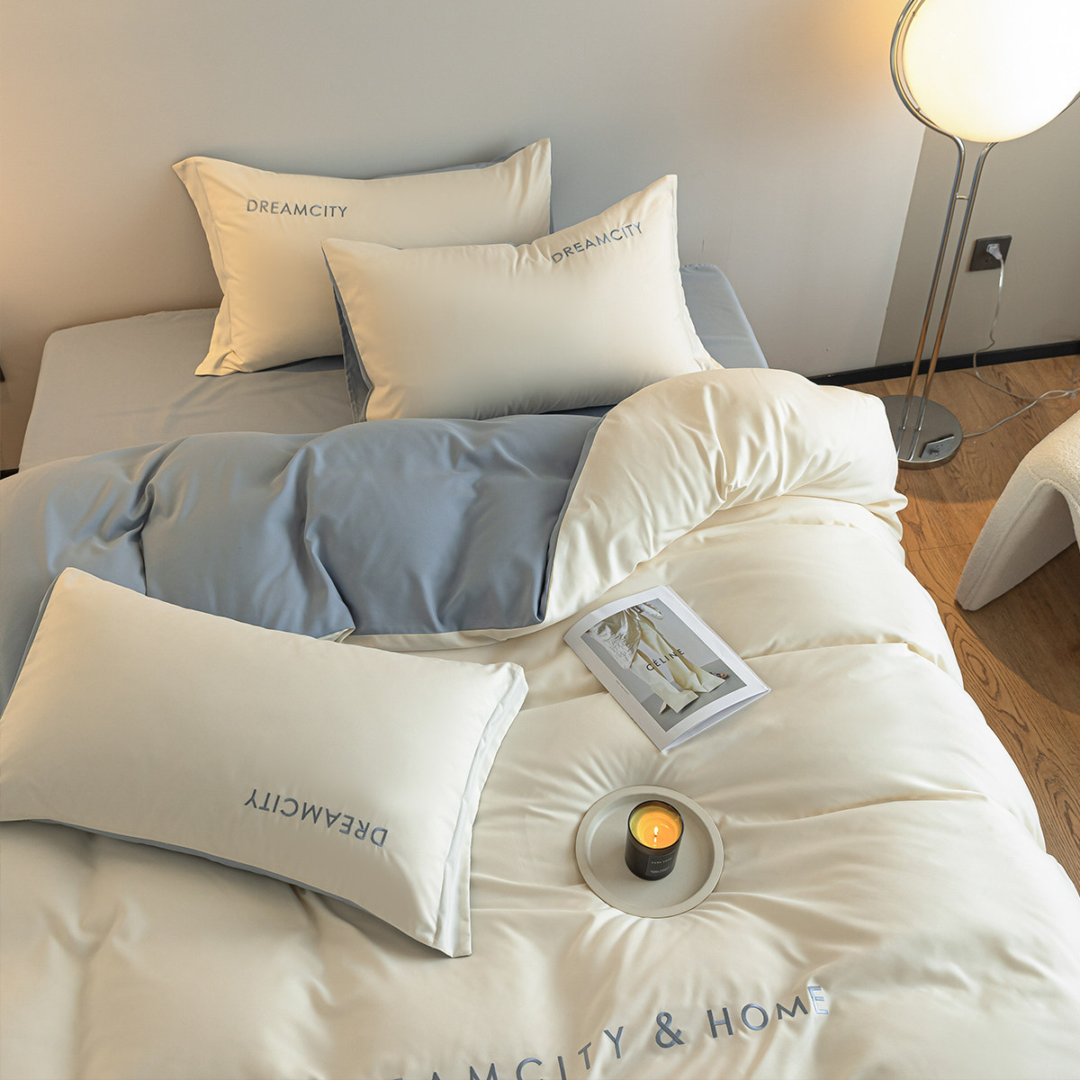 无印良品高级感床上四件套全棉纯棉双人被套床单笠轻奢床品三件套