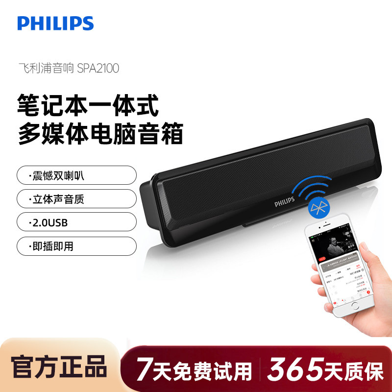 飞利浦SPA2100笔记本电脑小音箱便携可夹USB双模台式有线蓝牙音响