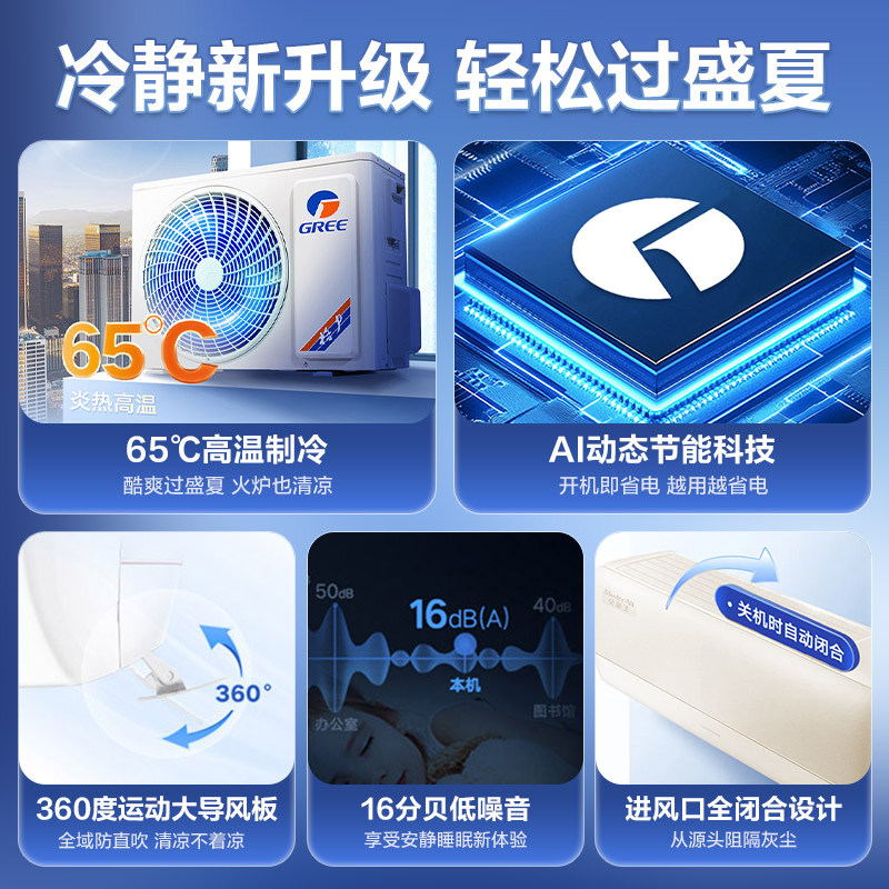 【格力官方旗舰店】新一级能效1.5匹空调大1匹变频家用挂机全能王