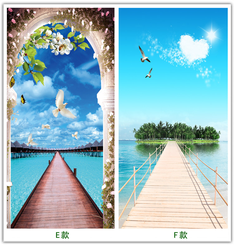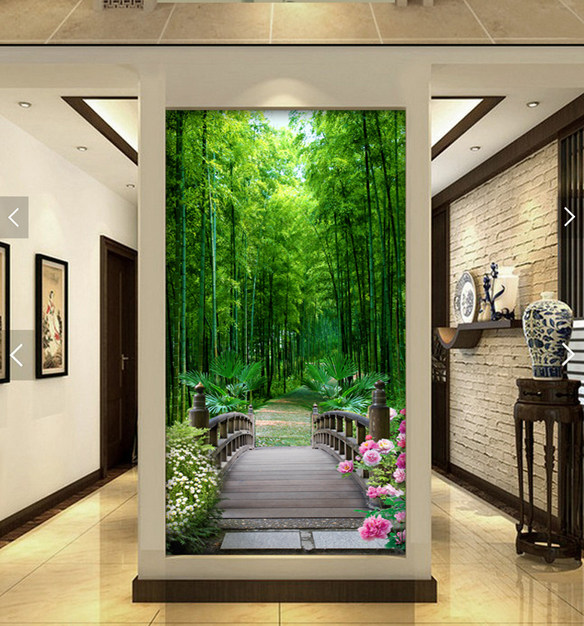 玄关过道墙贴画3d立体壁画自粘防水壁纸客厅墙纸贴纸林荫小道定制