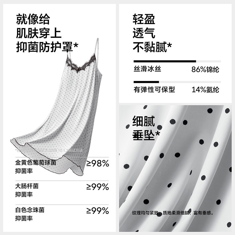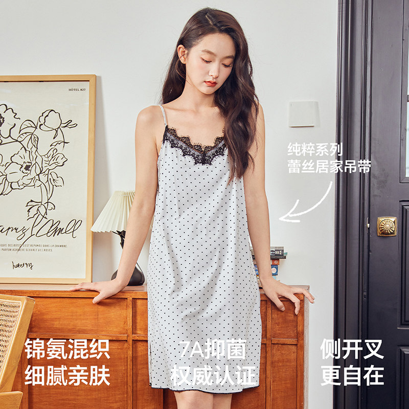 森马女士家居服睡裙蕾丝吊带可爱波点甜美舒适透气2025夏季薄宽松