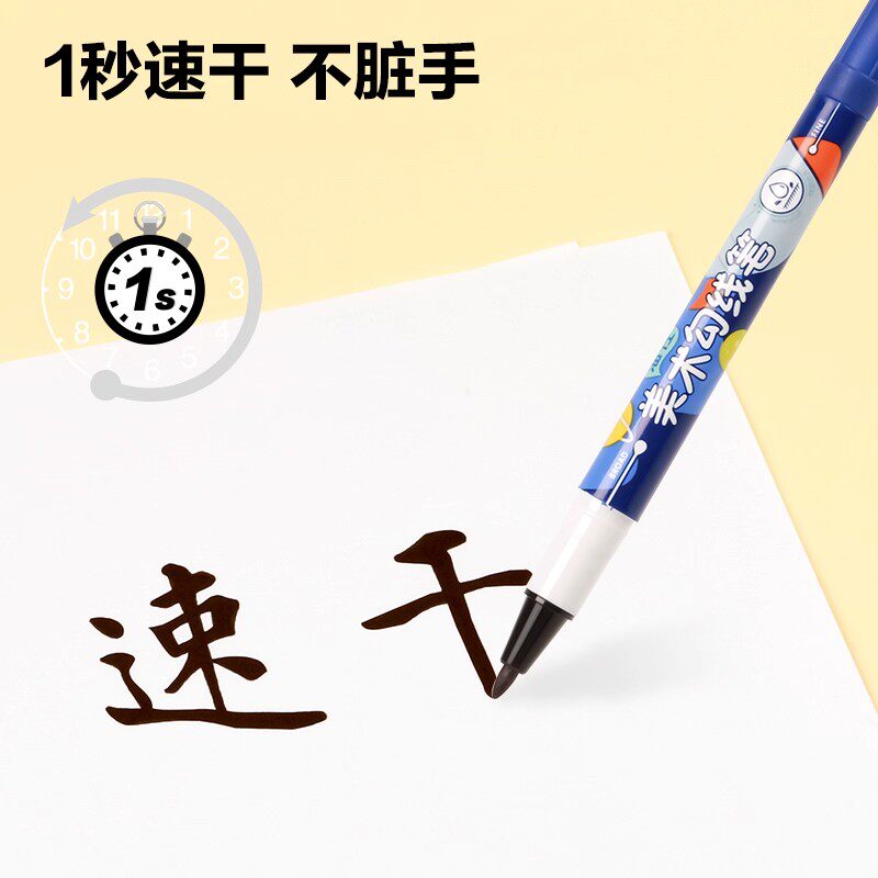 晨光儿童勾线笔美术生专用双头黑色记号笔不透色速干卡通油性勾边笔幼儿园一年级描边绘画粗细头勾勒笔线条笔