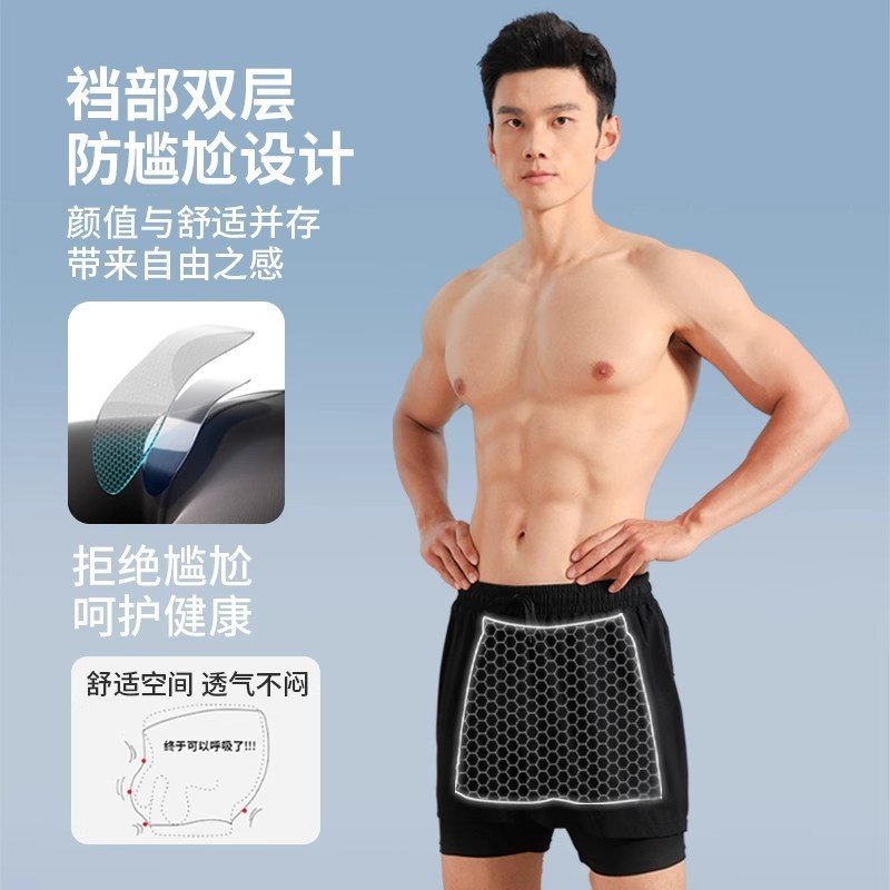 2025新款男士双层防尴尬温泉海边度假专业大码遮肉泳衣游泳沙滩裤