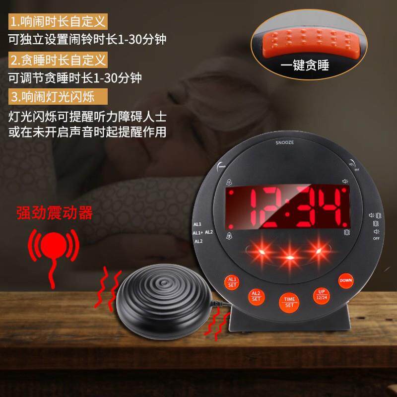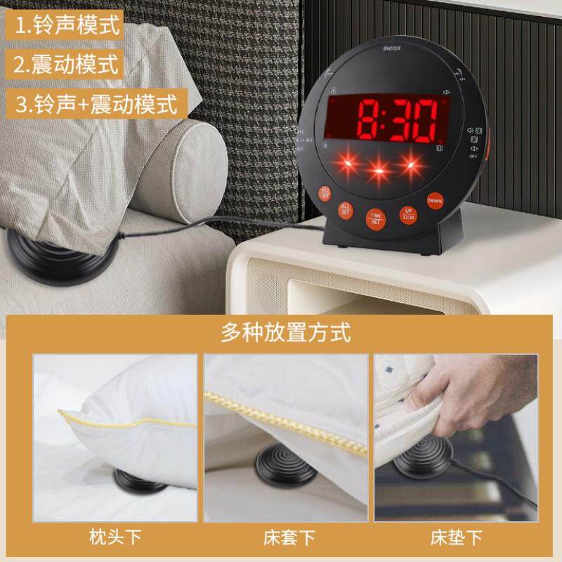 震动闹钟多功能带门铃提醒时钟电子LED数字钟大声音强劲振动台钟