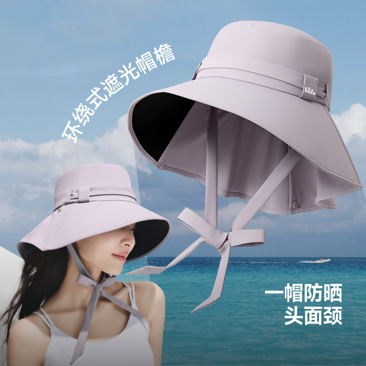 蕉下飘带渔夫帽2026新款后颈披肩蝴蝶结旅游遮阳显脸小海边防晒帽