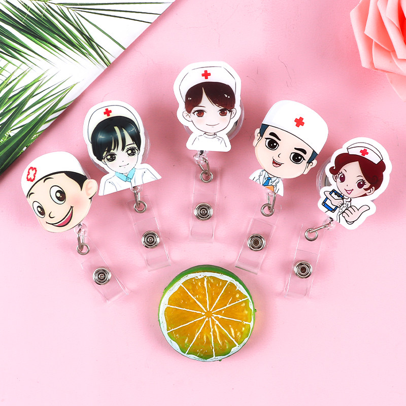 可爱卡通易拉扣可伸缩扣医生护士学生卡套胸牌胸卡夹子挂绳工作证