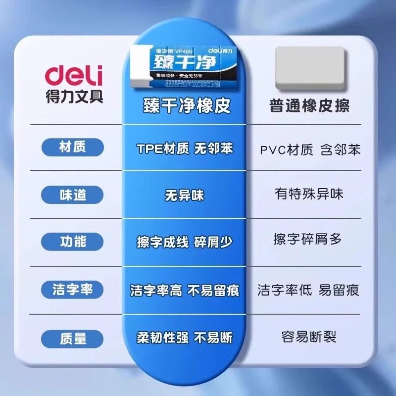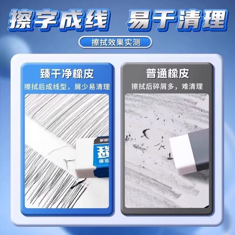 得力臻干净2B橡皮擦无屑超干净小学生专用擦拭可成条不易留痕日常学习用品幼儿园考试美术素描不易留痕橡皮檫