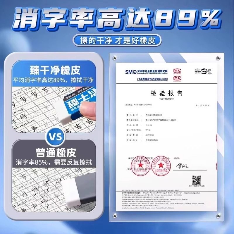 得力考试专用橡皮擦中小学生答题卡2B橡皮儿童铅笔擦子干净不留痕