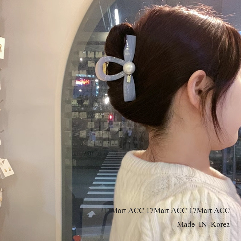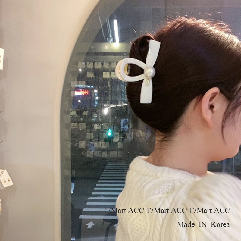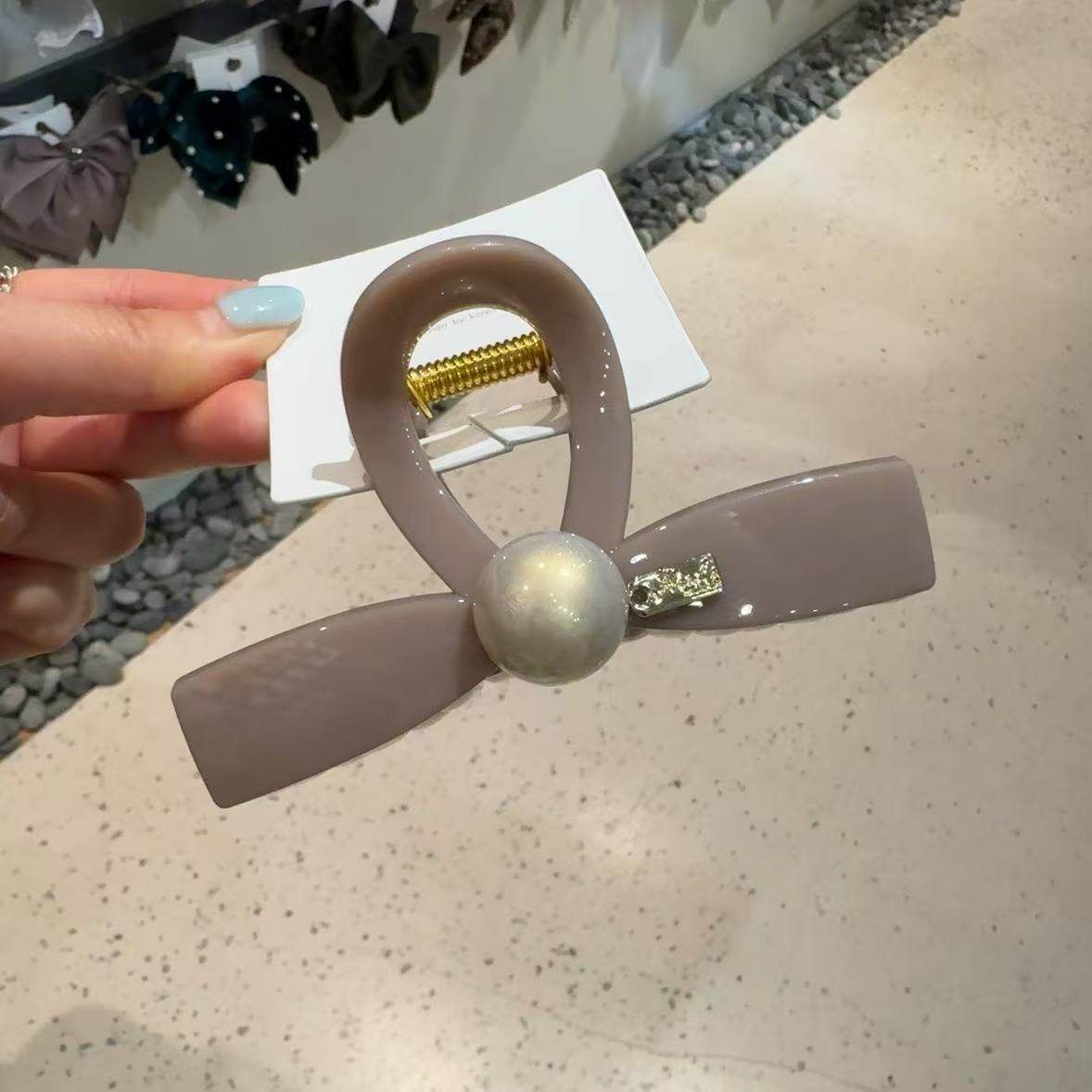 韩国baket发饰优雅气质珍珠蝴蝶结发夹后脑勺抓夹时尚盘发鲨鱼夹